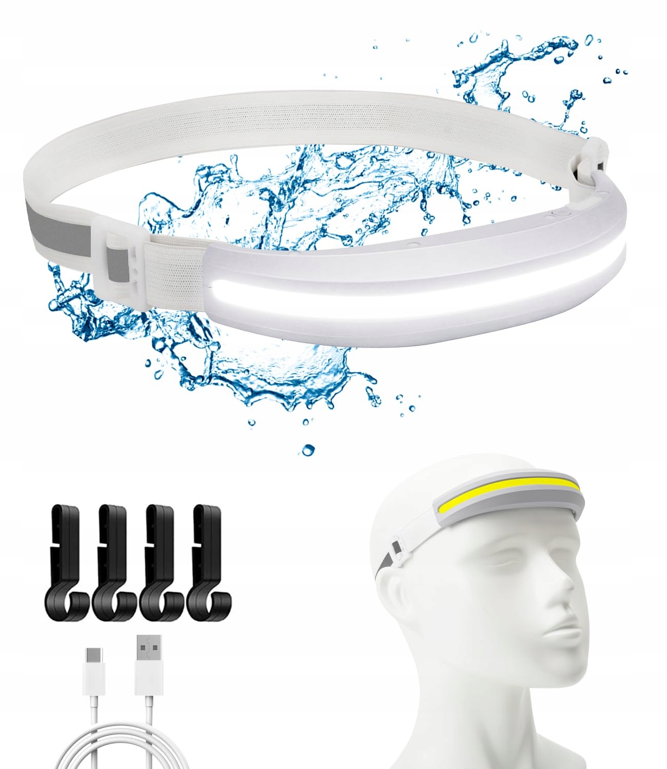 Nalezuns LED Czołówka, Czołówka LED Ładowalna, Czołówka 230° Ultra Szerokokątna, IPX4 Wodoodporna 4 Tryby Świecenia Czołówka, LED-Reflektor do Biegania, Kempingu, Wędrówek (Biała)