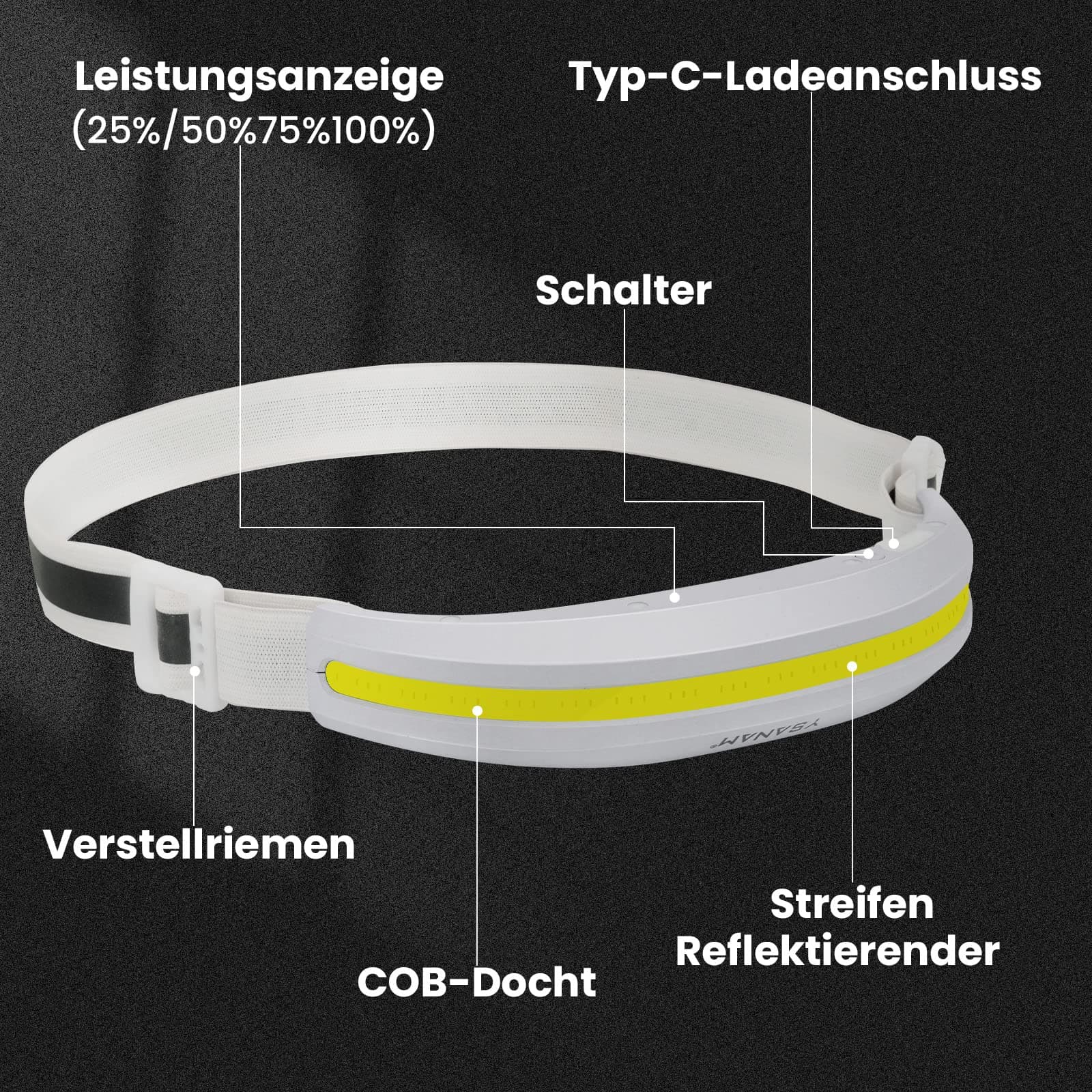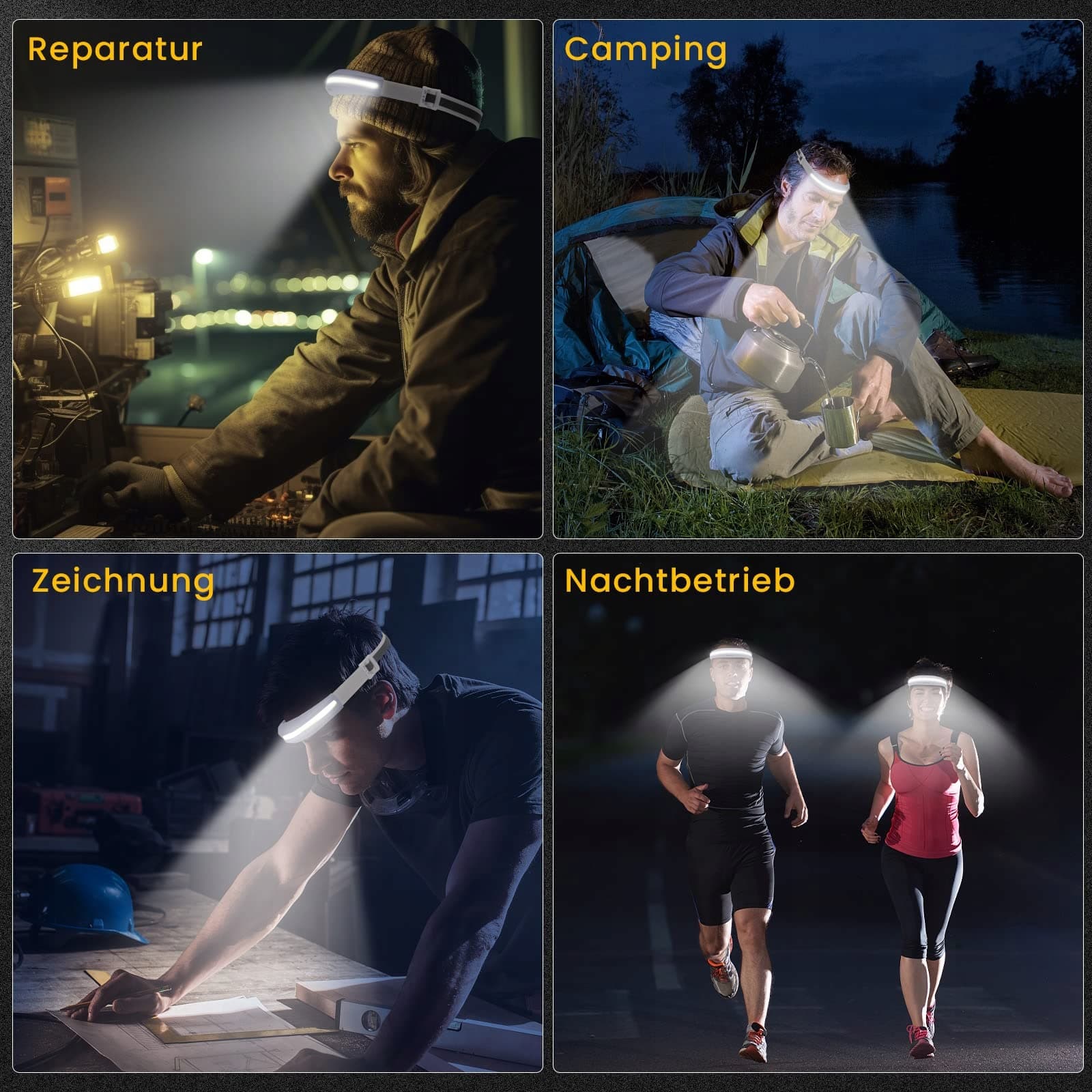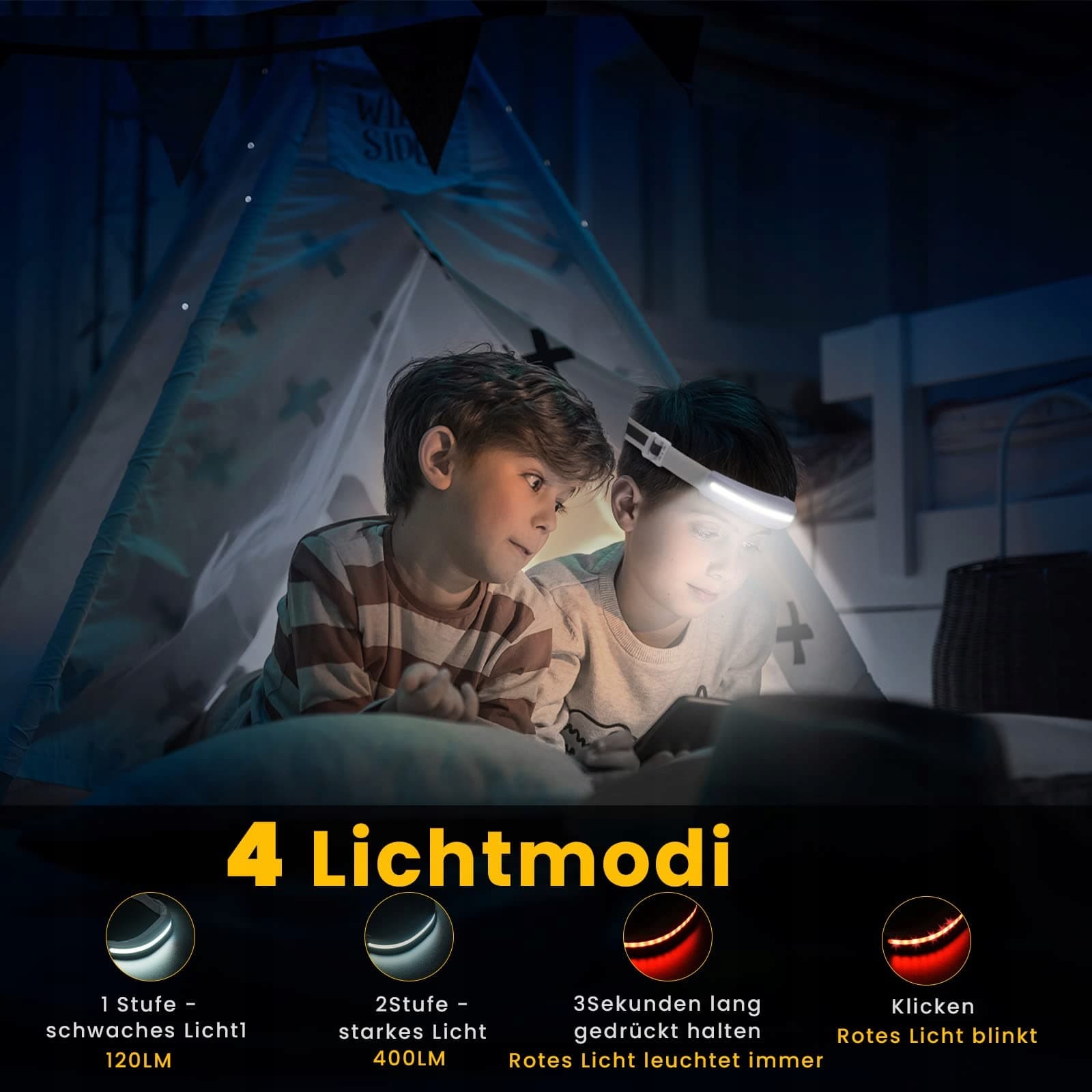 ✦[Superjasna i 4 tryby świecenia]——Lampa COB wykorzystuje wiodące w branży chipy LED i świeci do 328ft/100 metrów. 230° ultra szeroki kąt widzenia może łatwo oświetlić ciemne otoczenie. Czołówka LED ma 4 tryby świecenia. Tryb wysoki COB, tryb niski COB, tryb wysoki LED, tryb niski LED oraz tryb stroboskopowy, a długie naciśnięcie przycisku aktywuje czerwone światło i czerwony błysk SOS.