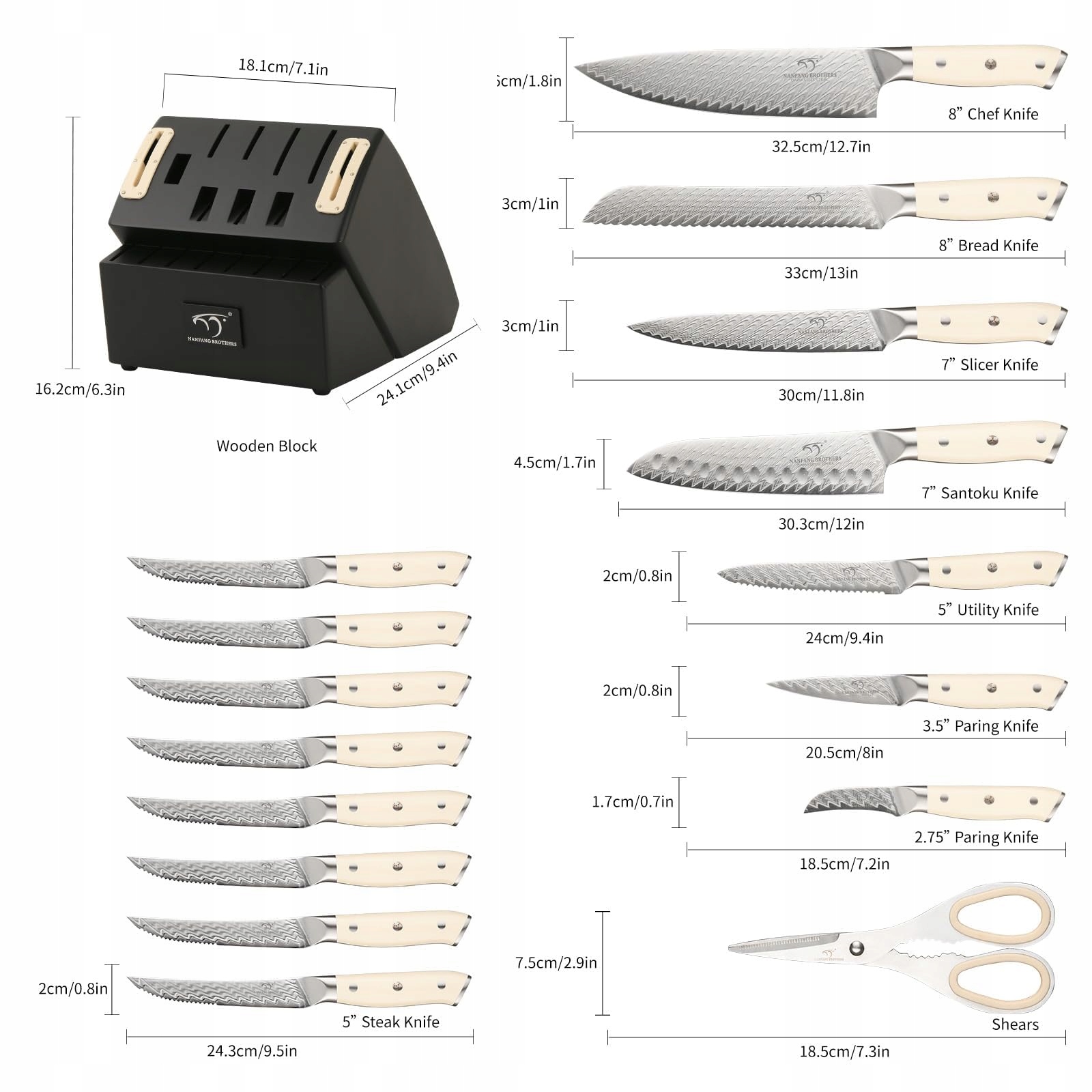 NANFANG BROTHERS Zestaw Noży Kuchennych 19 Sztuk Stal Damasceńska VG10