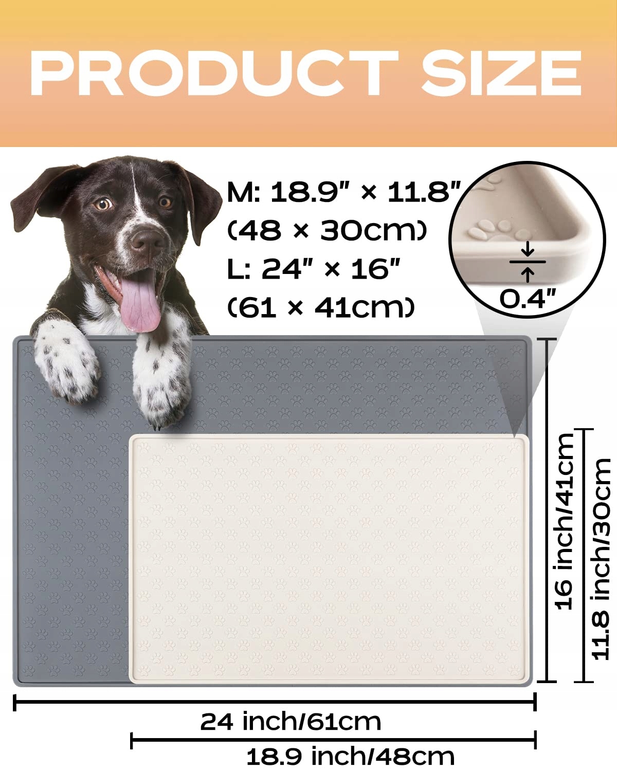 Mata na miski dla psów, maty na jedzenie dla psów i kotów, antypoślizgowa mata na jedzenie z silikonu - wodoodporna podkładka z rantem, nadająca się do mycia w zmywarce (L: 60×40cm, Kremowa)