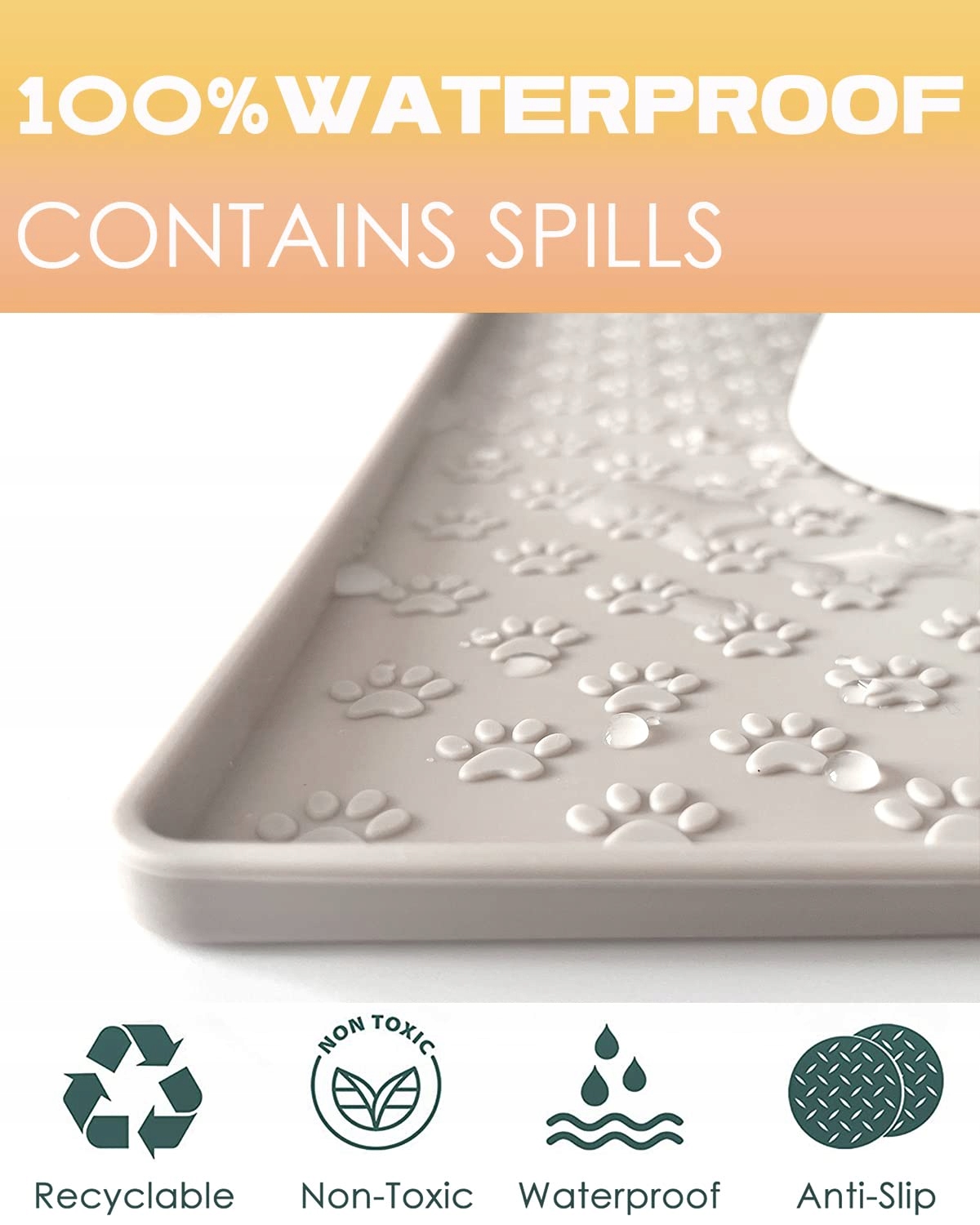🐶🐱 SILIKON W JAKOŚCI SPOŻYWCZEJ & BEZPIECZNY DLA ZWIERZĄT - Mata na miski dla zwierząt wykonana jest z silikonu w jakości spożywczej, jest w 100% wolna od BPA i nietoksyczna. Zapobiega spożywaniu przez twoje zwierzę jedzenia, które zanieczyściło podłogę. Przyjazny dla zwierząt design dla zdrowego i wygodnego karmienia!