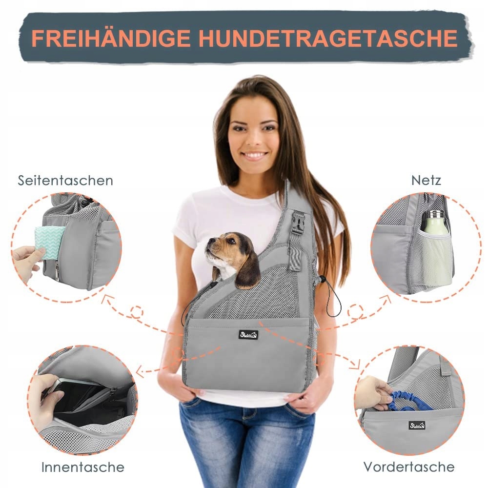 Wygodne oddzielne kieszenie --- Ta torba na psa z trzema oddzielnymi wewnętrznymi kieszeniami oferuje dużo miejsca do przechowywania. Możesz zabrać ze sobą przedmioty potrzebne do aktywności na świeżym powietrzu z Twoim zwierzakiem, takie jak przekąski dla zwierząt, brelok, portfel i telefon komórkowy.