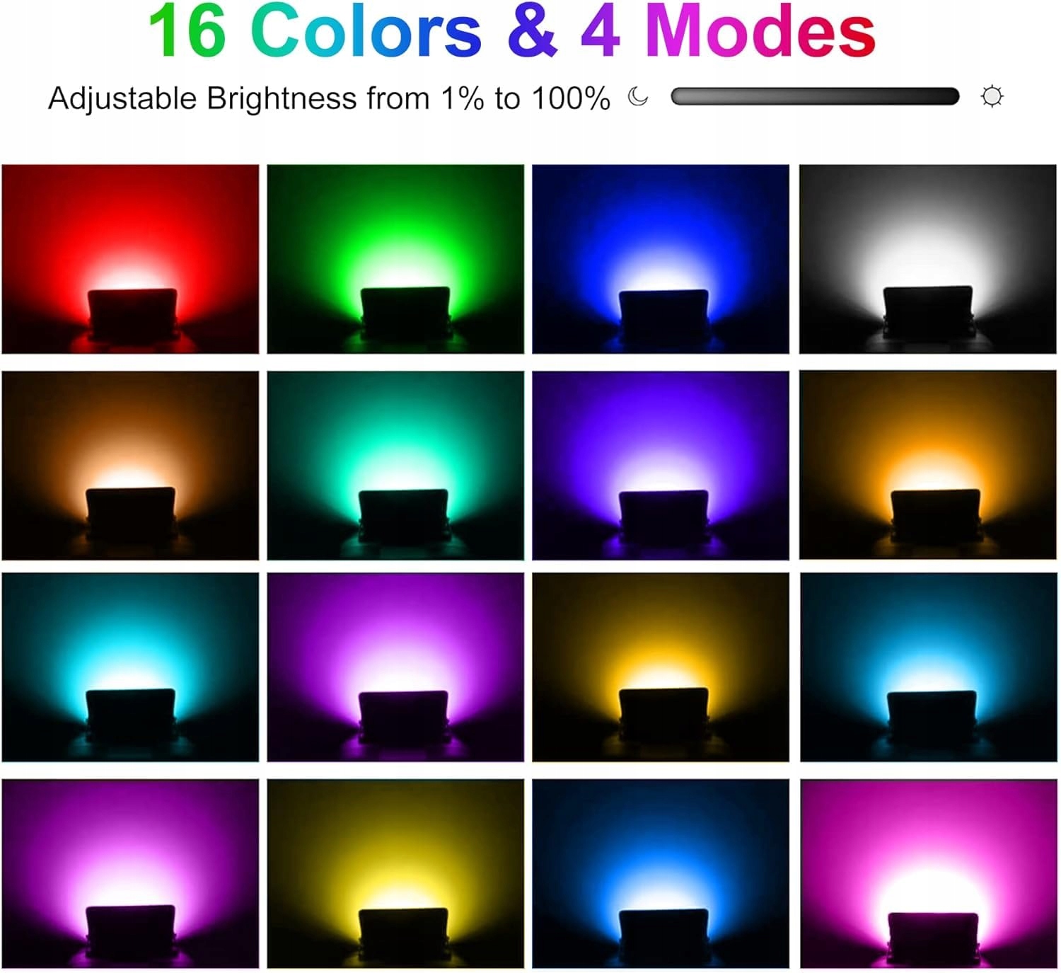 【Ultra jasność】 NATPOW 100W RGB LED naświetlacz, wyposażony w wysokiej jakości diody SMD LED, oferuje kąt świecenia 120° i wysoką jasność; reflektor LED RGB oferuje 16 różnych kolorów i 4 tryby (Flash, Fade, Strobe, Smooth) z ochroną przed olśnieniem i bez cieni.
