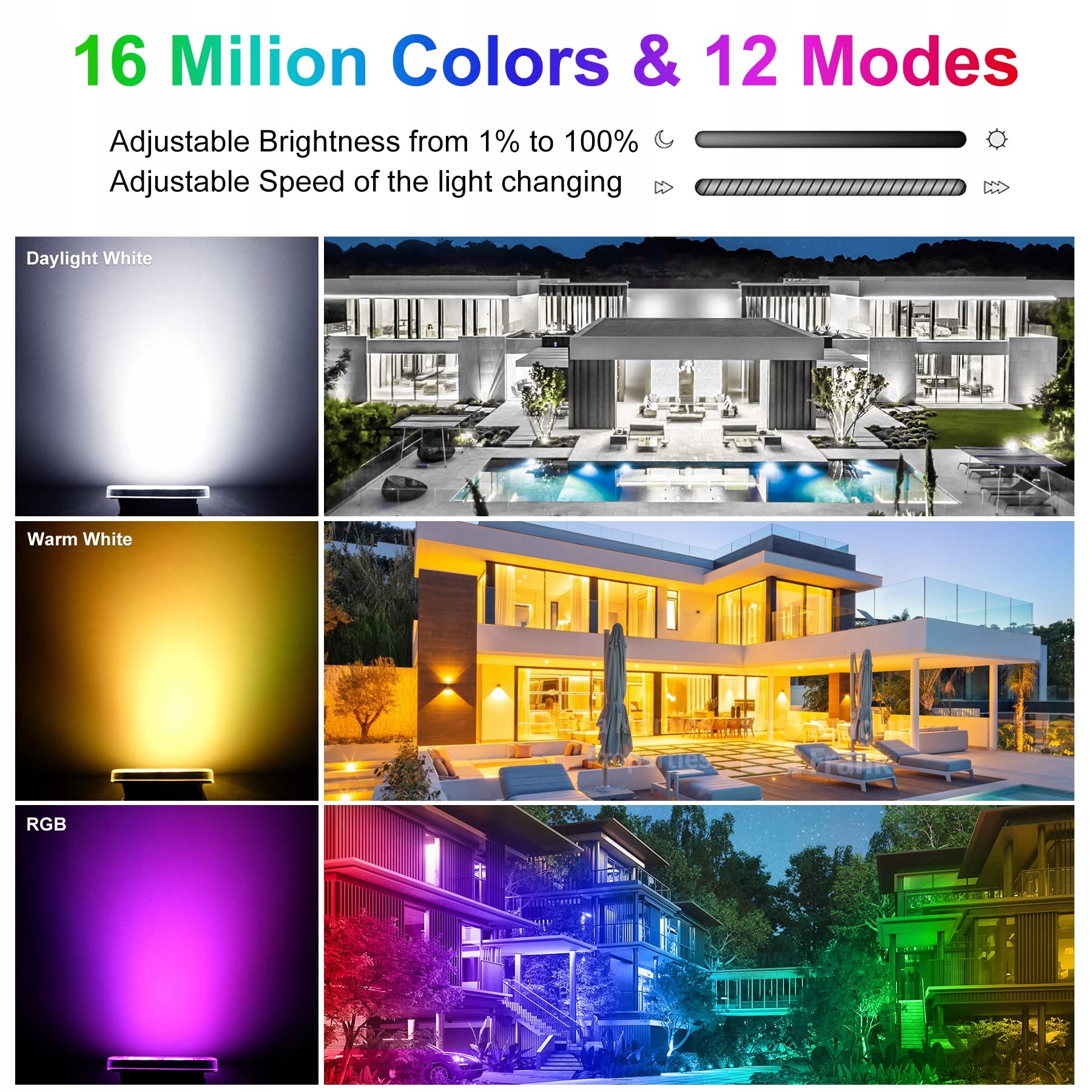 NATPOW Oświetlenie Ogrodowe LED RGB IP65 Bluetooth 16 Milionów Kolorów | Premium Supply