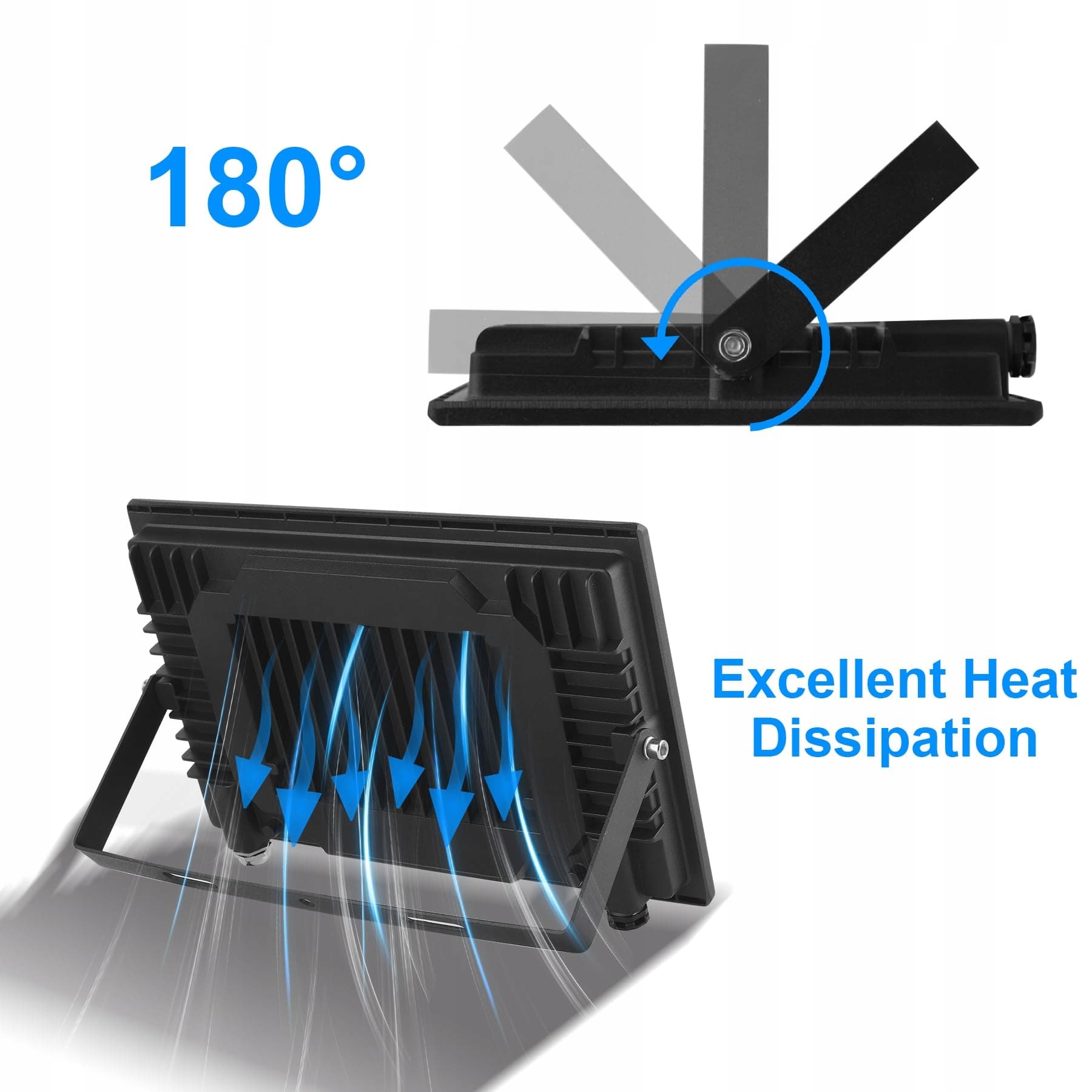 【Poprawa odprowadzania ciepła】 Konstrukcja obudowy z odlewu aluminiowego, wydajna struktura chłodząca oraz szkło odporne na wysoką temperaturę sprawiają, że to zewnętrzne oświetlenie LED jest trwalsze i bardziej niezawodne. Może chronić ten reflektor LED przed skutkami ekstremalnych warunków pogodowych.