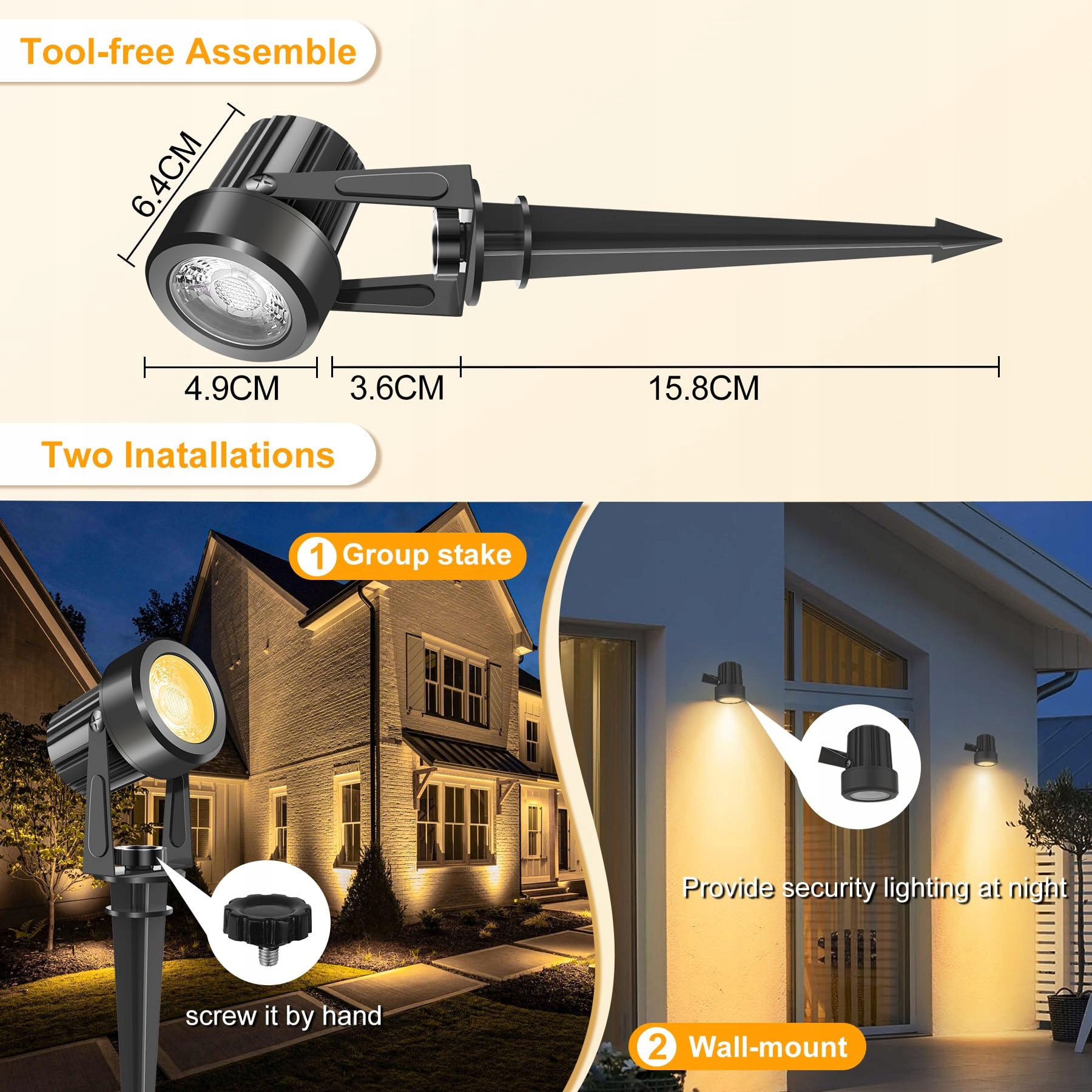 [ IP65 wodoodporne ] Dzięki wytrzymałej obudowie ABS i certyfikatowi IP65 te lampy ogrodowe na zewnątrz z zasilaniem niezawodnie opierają się deszczowi, śniegowi i upałom. Idealne na polską zimę! Doskonałe jako wodoodporne reflektory LED do całorocznego użytku na zewnątrz i w ogrodzie. (Wskazówka: dla maksymalnej trwałości zabezpiecz połączenie wtykowe podczas ulewy – wtedy możesz być spokojny o swoje oświetlenie.)
