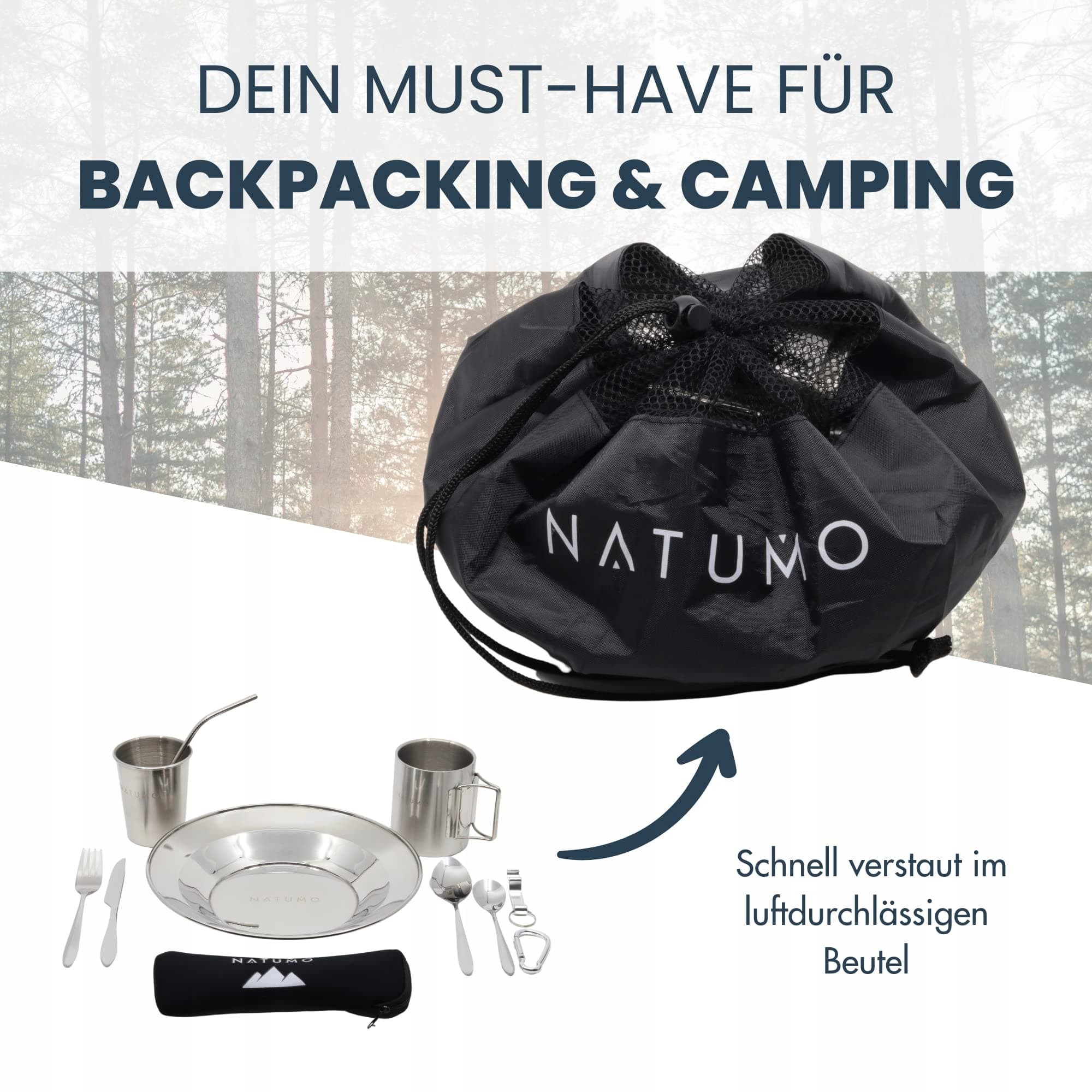 NATUMO Zestaw Sztućców i Naczyń Campingowych Stal Nierdzewna 10 Części | Premium Supply