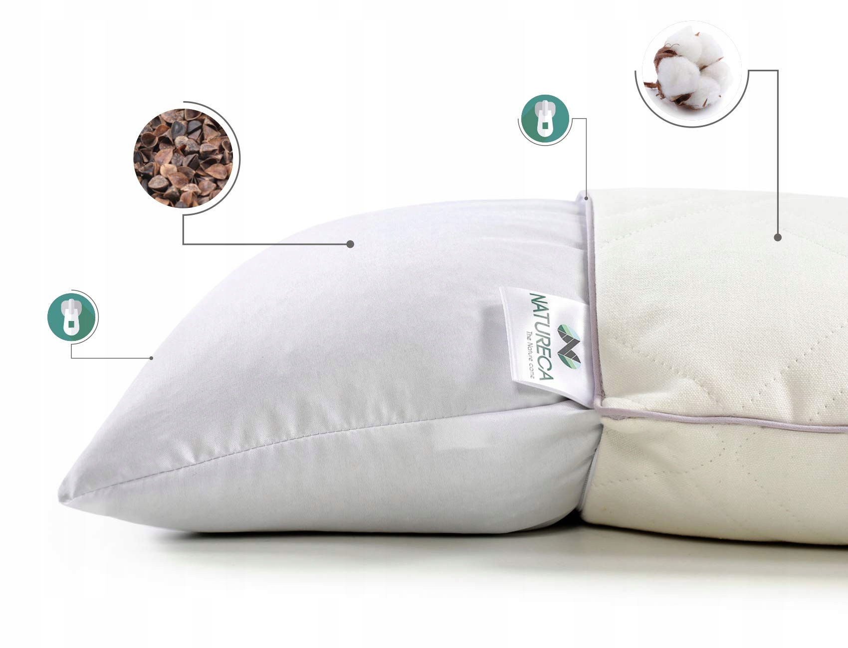 ✅ NATURECA Komfortowe poduszki z gryki wykonane są z naturalnych materiałów. Poduszka jest oddychająca i ma doskonałą regulację temperatury. Poduszki z gryki nie można podgrzewać. Made in EU.