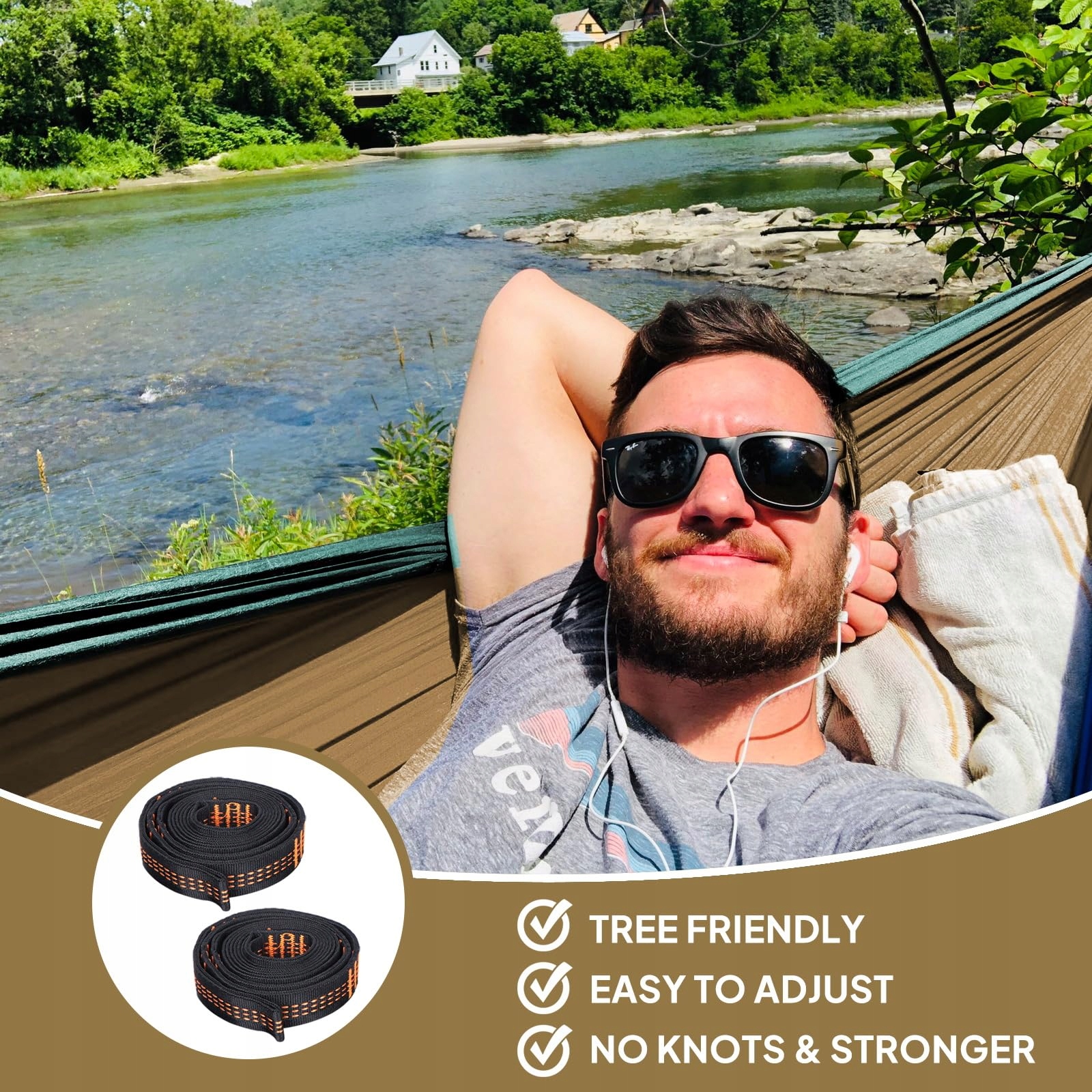 Wytrzymałość i ochrona drzew: Wykonana z nylonu spadochronowego 210T klasy wojskowej z potrójnymi szwami i specjalnie zaprojektowanymi, ultramocnymi paskami nylonowymi. Ma podwójną wytrzymałość na zerwanie i jest wystarczająco mocna, aby utrzymać ponad trzech przeciętnych dorosłych! Ma również duży rozmiar (300x200 cm) i można ją łatwo prać ręcznie. Wyposażone szerokie paski sprawiają, że jest bardziej stabilna i mocna, nigdy nie ześlizguje się na ziemię i chroni drzewo przed uszkodzeniami.
