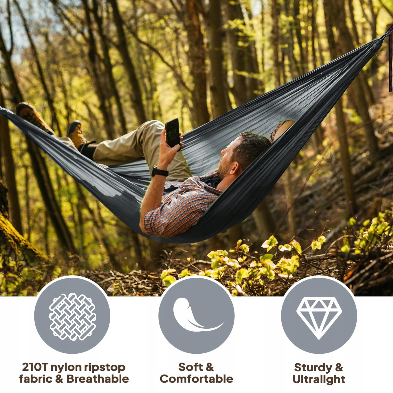 NATUREFUN Ultralekka Hamak Campingowy 300kg Nylon Szybkoschnący Karabinki Do Wewnątrz Na Zewnątrz Ogród