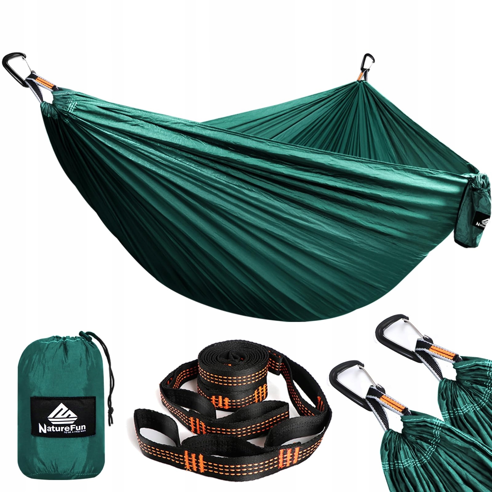 NATUREFUN Ultralekki Hamak Campingowy 300kg 300x200cm Oddychający Szybkoschnący Nylon 2 Karabinki 2 Nylonowe Paski W Zestawie Na Zewnątrz