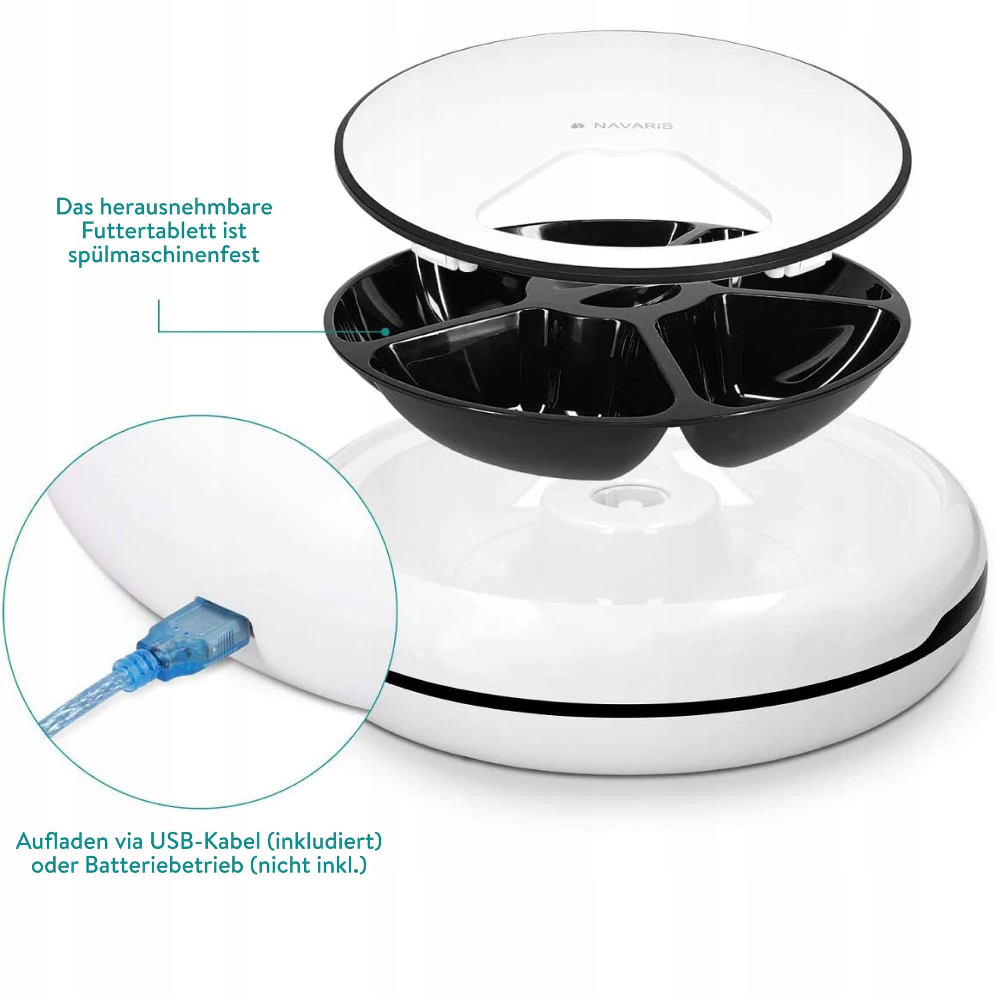 ŁATWE CZYSZCZENIE: Podajnik jest łatwy do czyszczenia. Wewnętrzną misę można wyjąć i nadaje się do mycia w zmywarce!