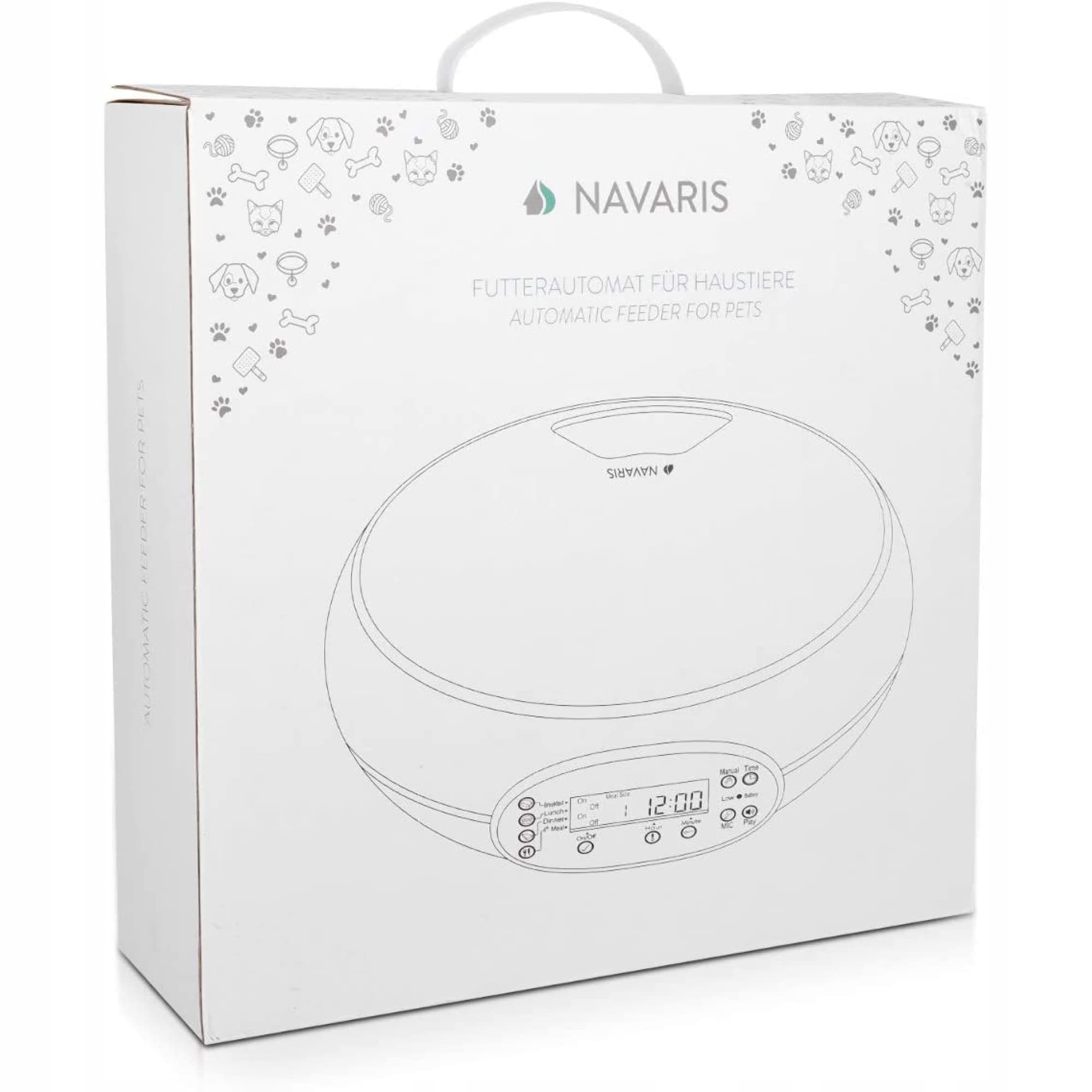 Automatyczny podajnik karmy Navaris z timerem - 1,6 L podajnik karmy do 4 posiłków dziennie - akustyczne powiadomienie - dla małych psów i kotów