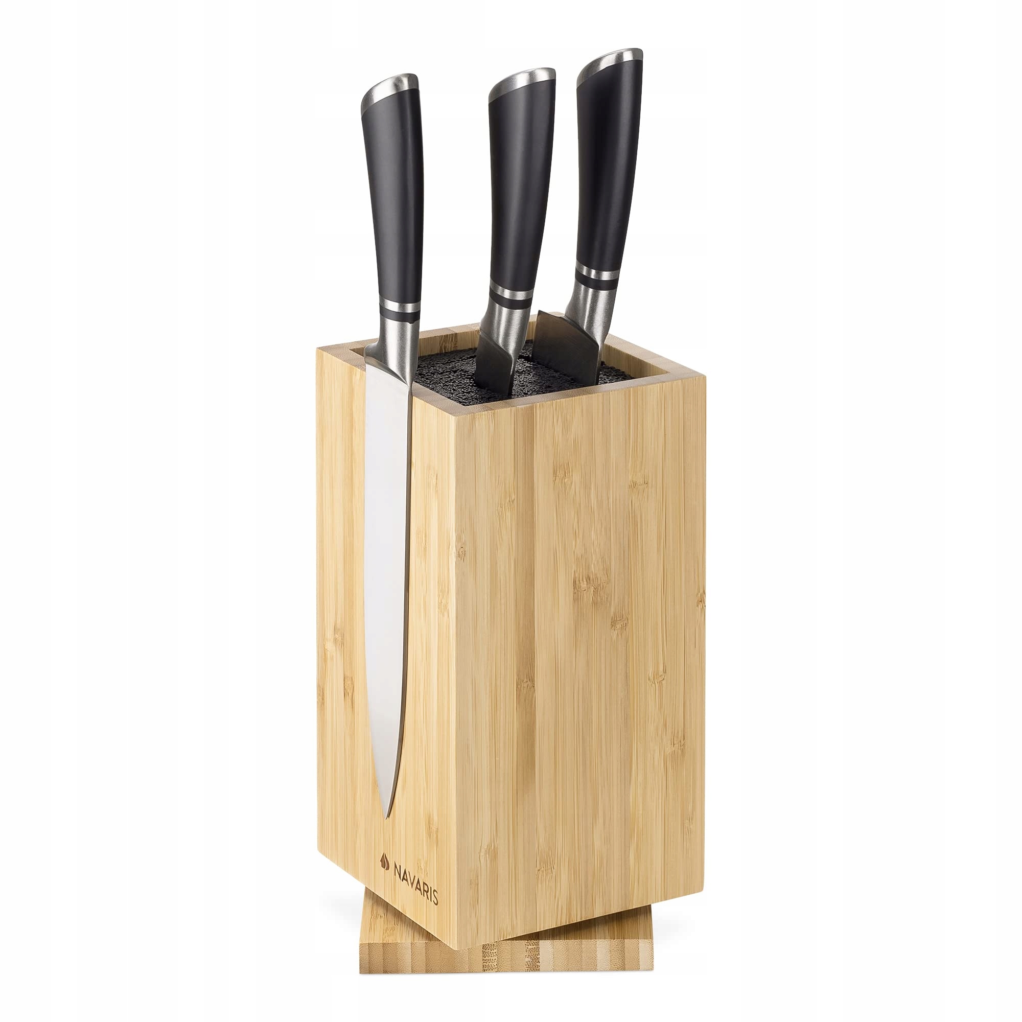 Obracalny magnetyczny blok na noże Navaris z bambusa - blok na noże z drewna bez wyposażenia do noży kuchennych, noży szefa kuchni, sztućców kuchennych - z wkładem z włosia