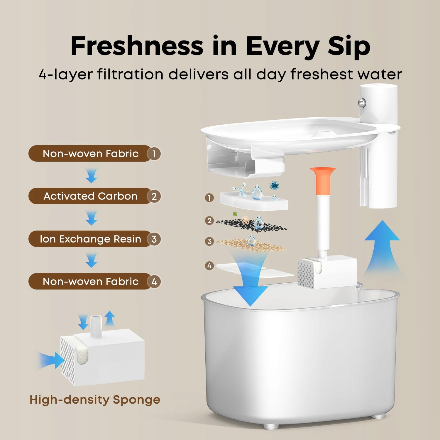 Cicha pompa 5V: Cicha, energooszczędna pompa działa cicho (≤ 20 dB), dzięki czemu Twoje zwierzęta mogą wygodnie pić, a jednocześnie cieszyć się spokojnym otoczeniem w domu. Łatwa do czyszczenia, co ułatwia regularną konserwację. Uwaga: Panel sterujący nie musi być ponownie używany.
