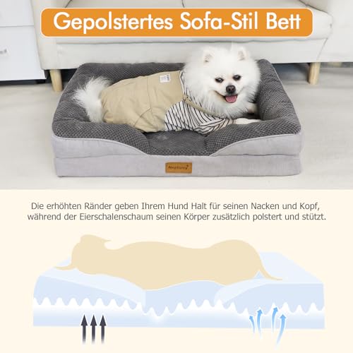 Nepfaivy Ortopedyczne Legowisko dla Średnich Psów - Kosz dla Psa, Kanapa dla Psa, Pranie z Pianką w Kształcie Jajka, Kanapa dla Psa z Wysokim Brzegiem i Antypoślizgowym Dnem dla Średnich Psów, 91x68cm