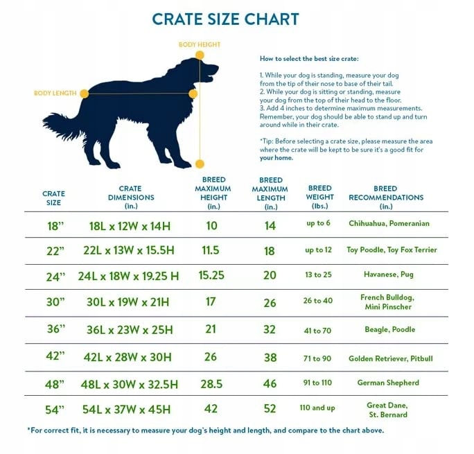 Klatka dla psa Nowy Świat z podwójnymi drzwiami ma wymiary 61 x 46 x 48 cm (dł. x szer. x wys.) i nadaje się dla małych ras psów o wadze dorosłego psa od 5,4 do 11 kg.