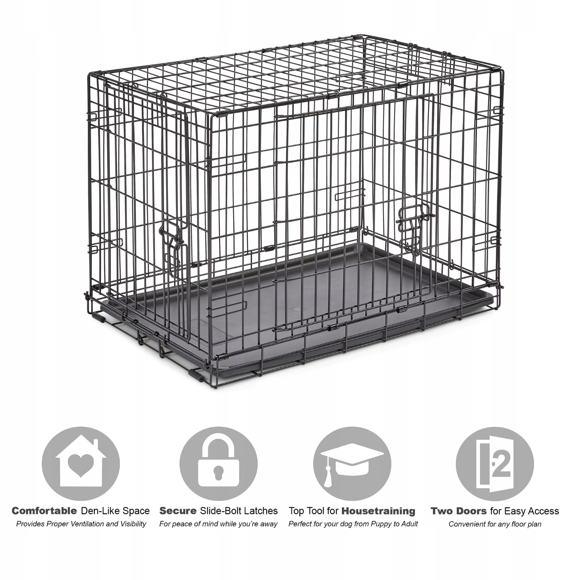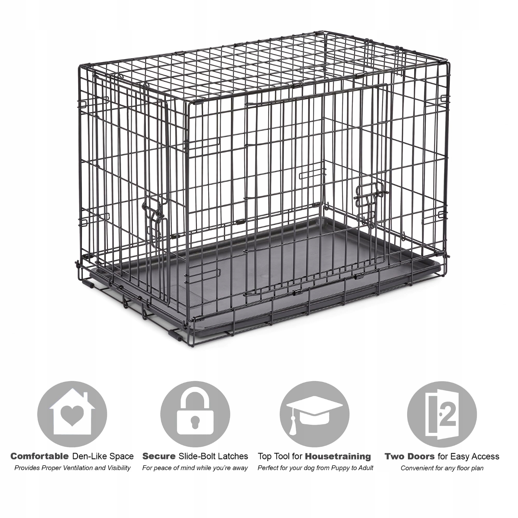 New World B30DD Hundebox, z podwójnymi drzwiami, 76 cm, dla małych ras psów, z nieprzeciekającą tacą na dno, nóżkami ochronnymi i opatentowanymi funkcjami