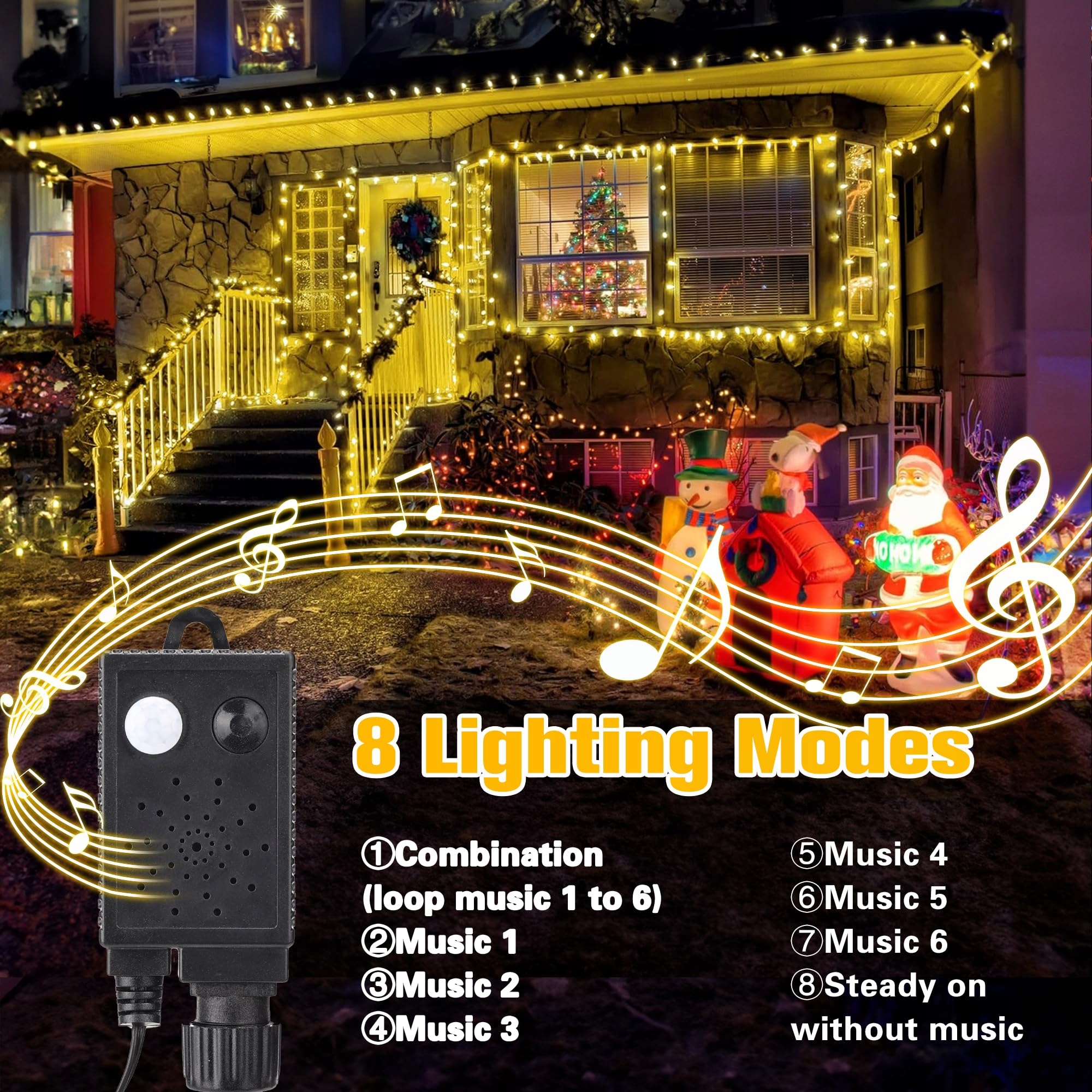 8 trybów oświetlenia: Łańcuch świetlny na choinkę posiada 8 trybów oświetlenia, w tym 1 kombinację (muzyka w pętli 1 do 6), 6 pojedynczych odtwarzania muzyki oraz 1 światło stałe bez muzyki.