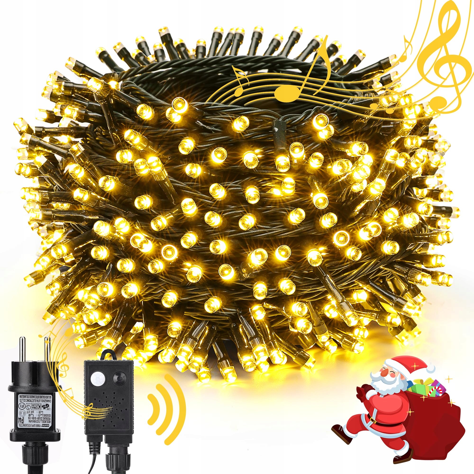 NEXIN Łańcuch świetlny na choinkę 25M Oświetlenie świąteczne Ciepła biel, 200LED Łańcuch świetlny zewnętrzny zasilany prądem z funkcją muzyki świątecznej, 8 trybów, Ozdoba świąteczna wodoodporna na imprezy do ogrodu