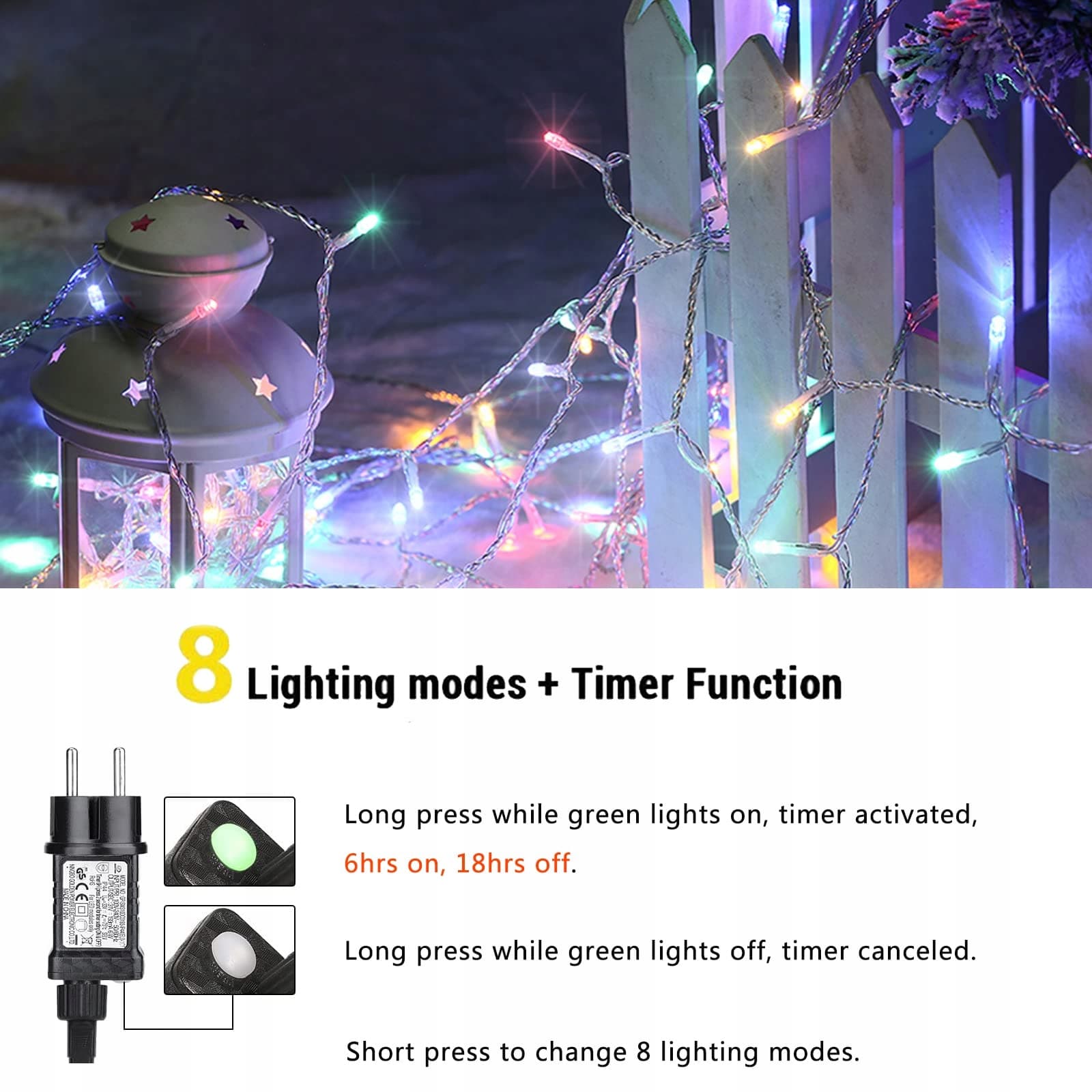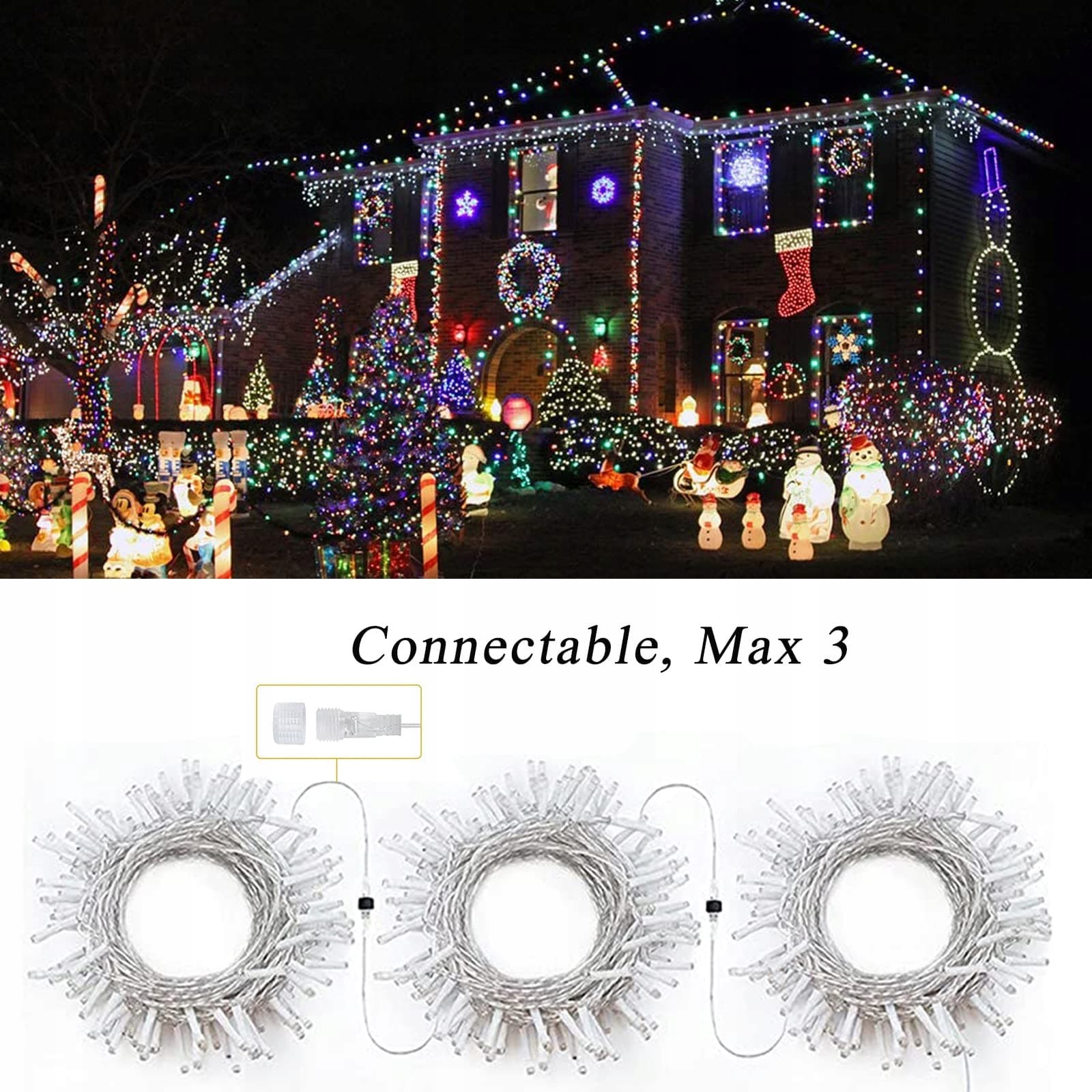 20M Oświetlenie Bożonarodzeniowe Zewnętrzne: Zestaw 20M 200 LED kolorowej lichterkette z wtyczką, 10CM odstępu między lampami, 3 metry kabla zasilającego, łącznie 23M. Lichterkette rozszerzalna, maks. 3 zestawy. (60M, 600 LED)