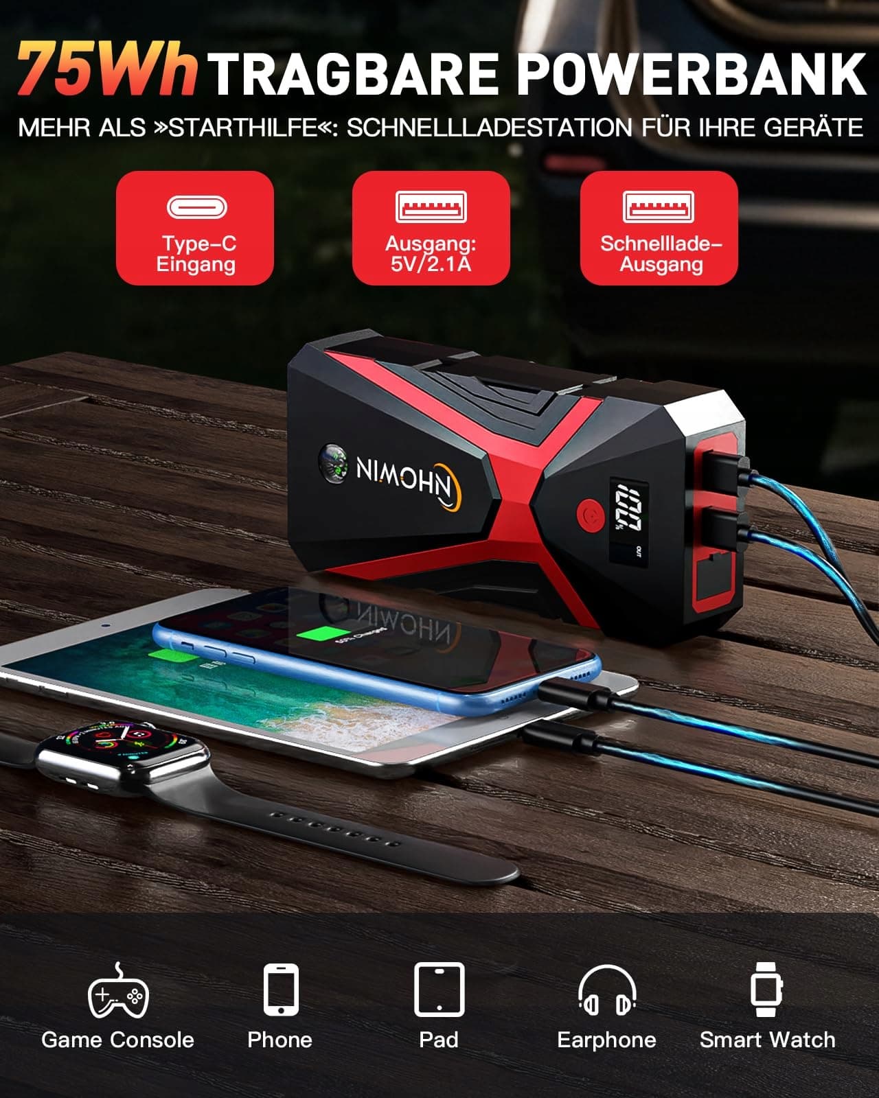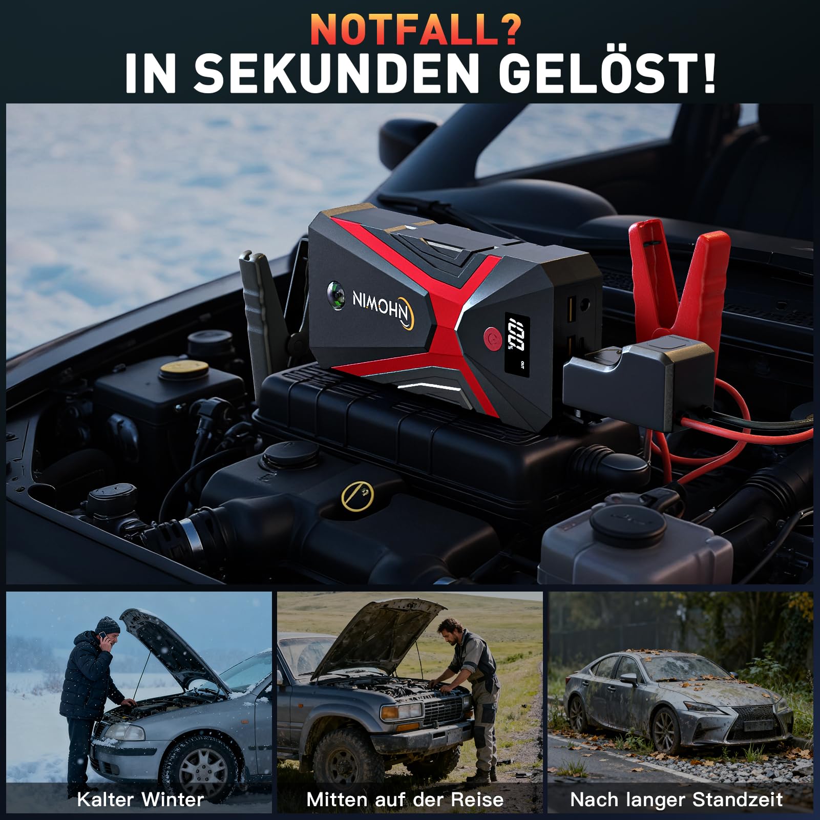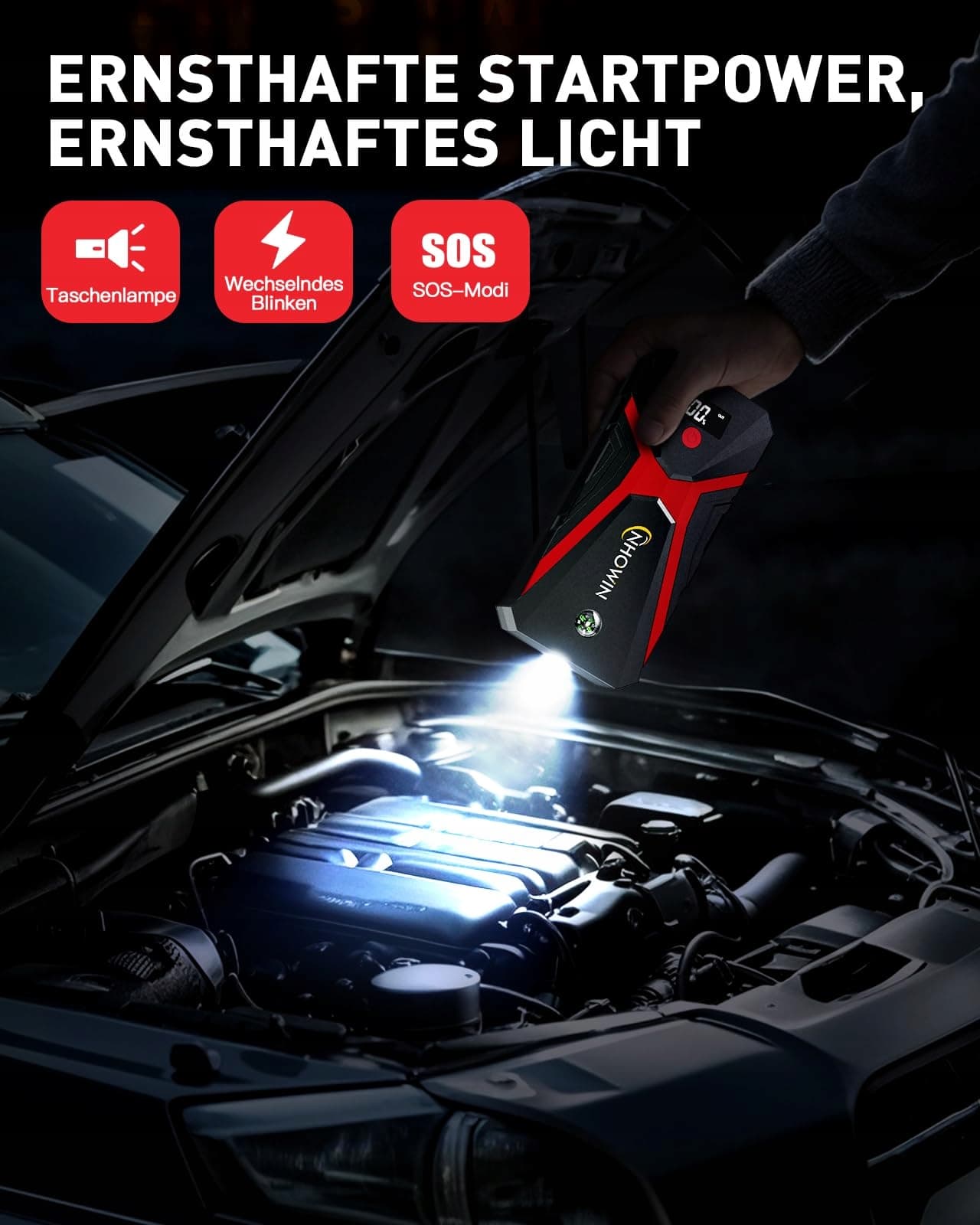 NHOWIN Powerbank 4000A Rozruchowa 12V Do Auta Benzyna Diesel LED Outdoor