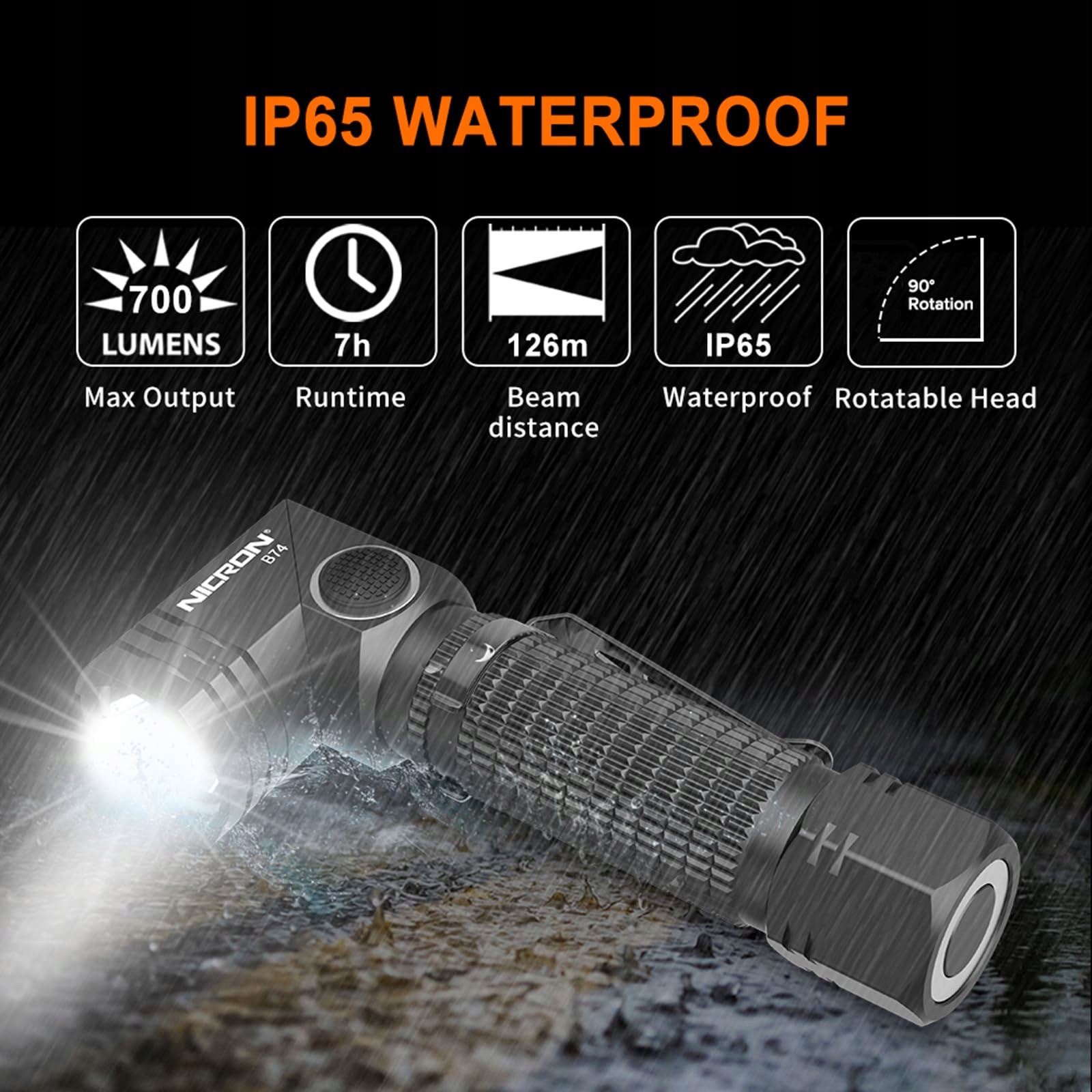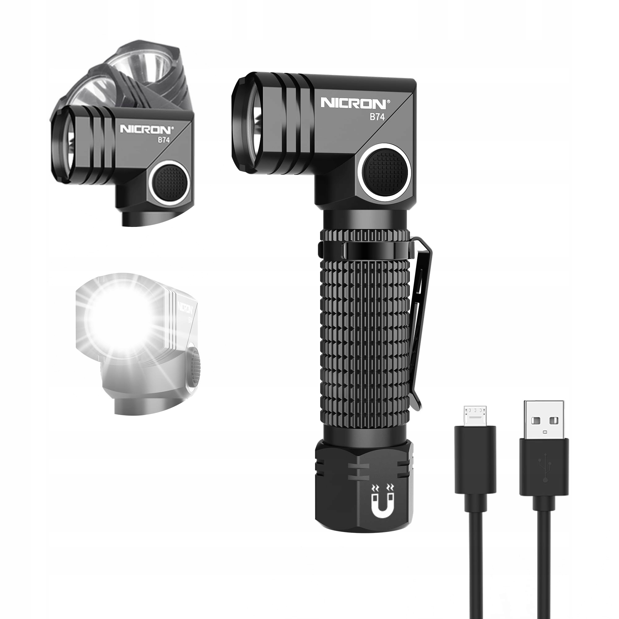 NICRON B74 Latarka LED Ładowalna 90 Stopni 700 Lumen IP65 Magnet Klips SOS | Premium Supply