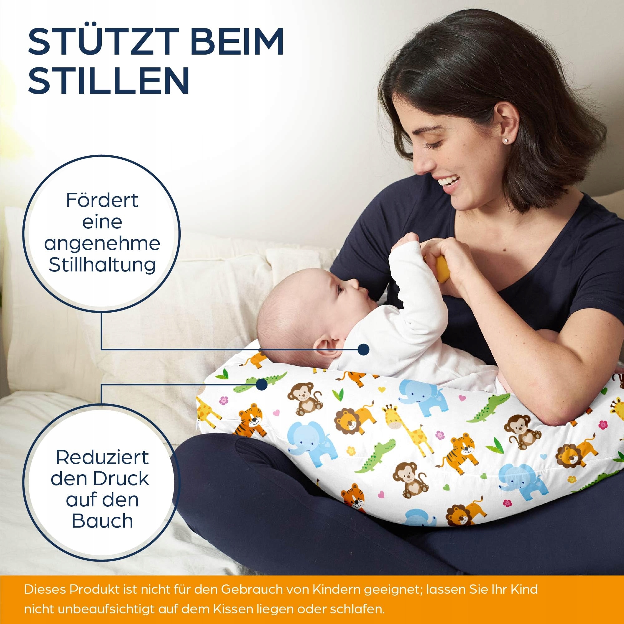 𝟭𝟬𝟬 % 𝗕𝗔𝗪𝗘Ł𝗡𝗔 - Miękka i przyjazna dla skóry poduszka do karmienia ma zdejmowaną poszewkę z 100% bawełny i została wyposażona w ukryty zamek błyskawiczny, aby zapobiec podrażnieniom skóry i zaczepianiu się o ubrania.