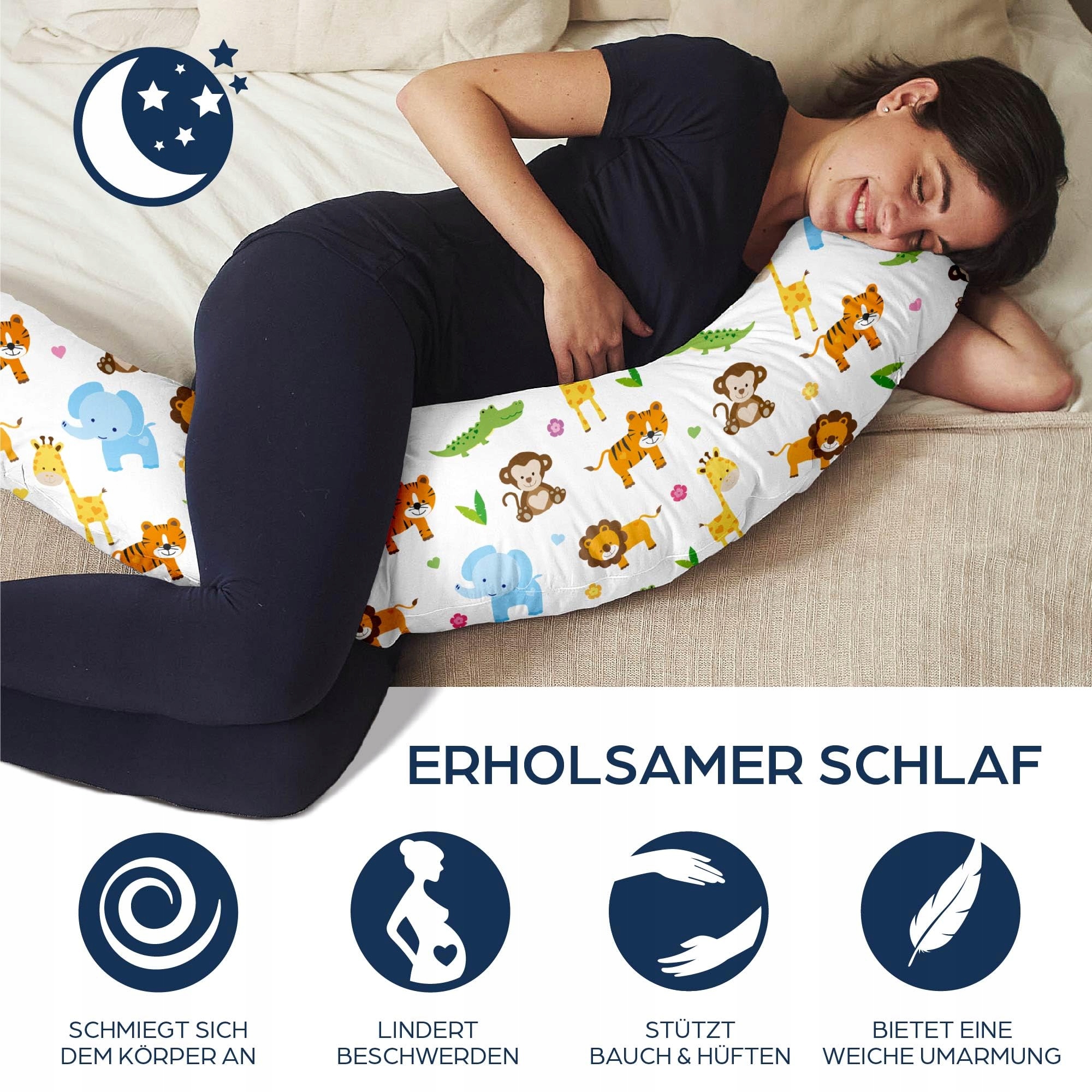 𝗣𝗥𝗔𝗟𝗡𝗔 𝗪 𝗣𝗥𝗔𝗟𝗖𝗘 - Poduszka XXL ze zdejmowaną poszewką nadaje się do prania w pralce i suszenia oraz jest łatwa do założenia. Dzięki wysokiej jakości tkaninie poduszka ciążowa i do spania na boku pozostaje miękka nawet przy częstym praniu.