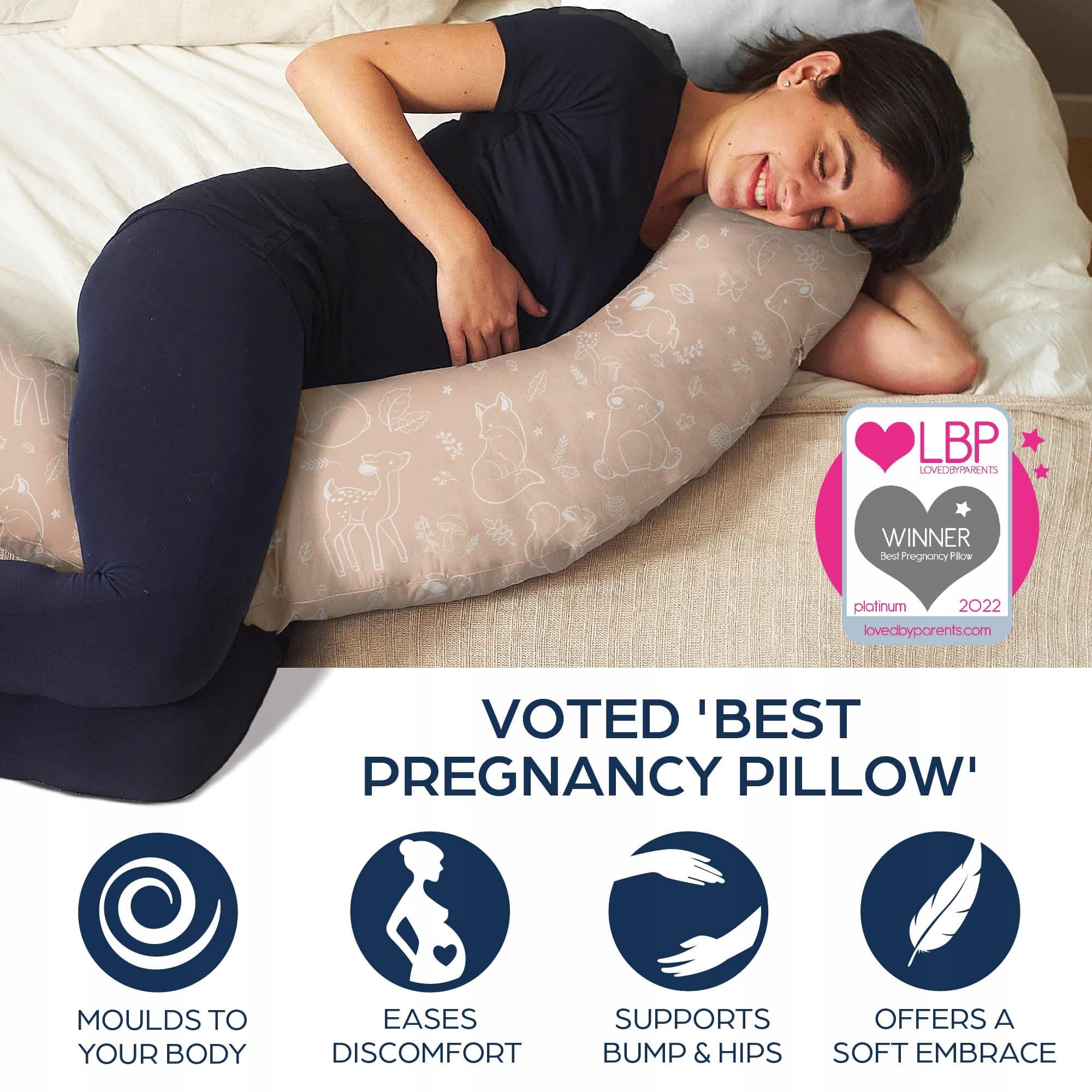 𝗦𝗧𝗔𝗕𝗜𝗟𝗡𝗔 𝗙𝗢𝗥𝗠𝗔, 𝗠𝗜Ę𝗞𝗞𝗔 & 𝗕𝗘𝗭𝗚Ł𝗢𝗦𝗡𝗔 - Poduszka ciążowa ma miękkie, stabilne i bezgłośne wypełnienie z włókna poliestrowego, które wygodnie dopasowuje się do ciała, skutecznie je wspiera i odciąża.