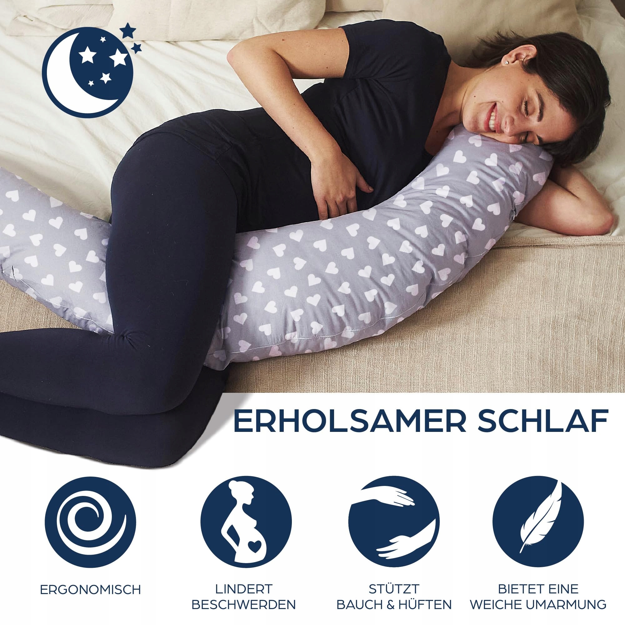𝗠𝗢𝗖𝗡𝗘 𝗣𝗥𝗔𝗡𝗜𝗘 - Poduszka XXL nadaje się do prania w pralce i suszenia oraz jest łatwa do założenia. Dzięki wysokiej jakości tkaninie poduszka ciążowa i do spania na boku pozostaje miękka nawet przy częstym praniu.