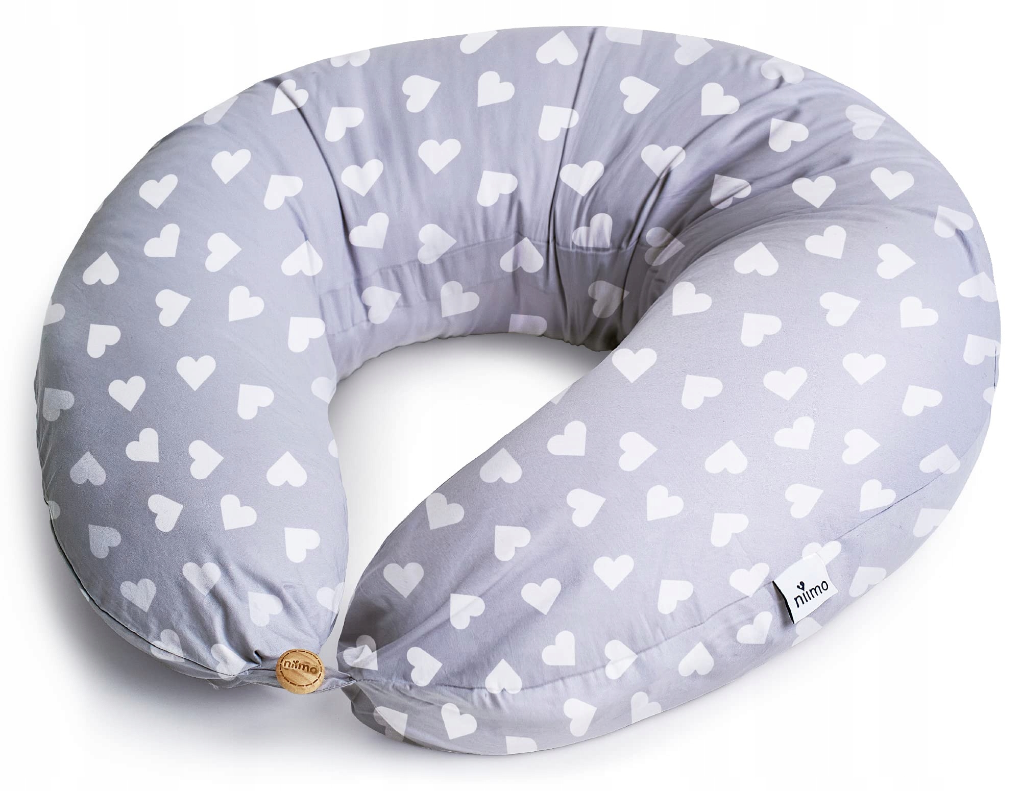 Niimo XXL 2-w-1 Poduszka ciążowa i do karmienia - 100% bawełniana poszewka z wypełnieniem z włókien, 100% zmywalna, ergonomiczna i wielofunkcyjna, szara z białymi sercami (200 x 70 cm)