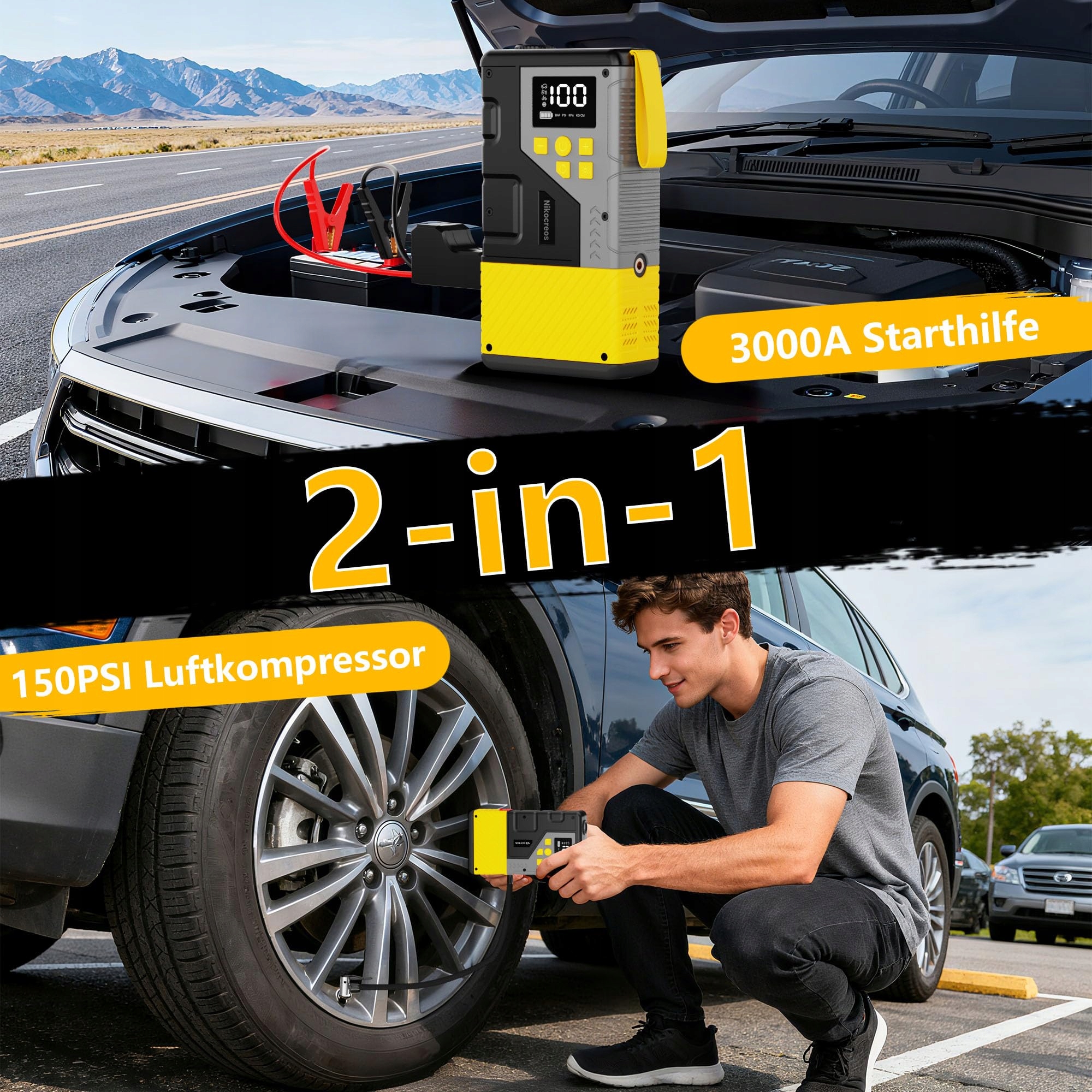 Nikocreos Autostarter Z Kompresorem 3000A 150PSI LCD LED | Premium Supply
