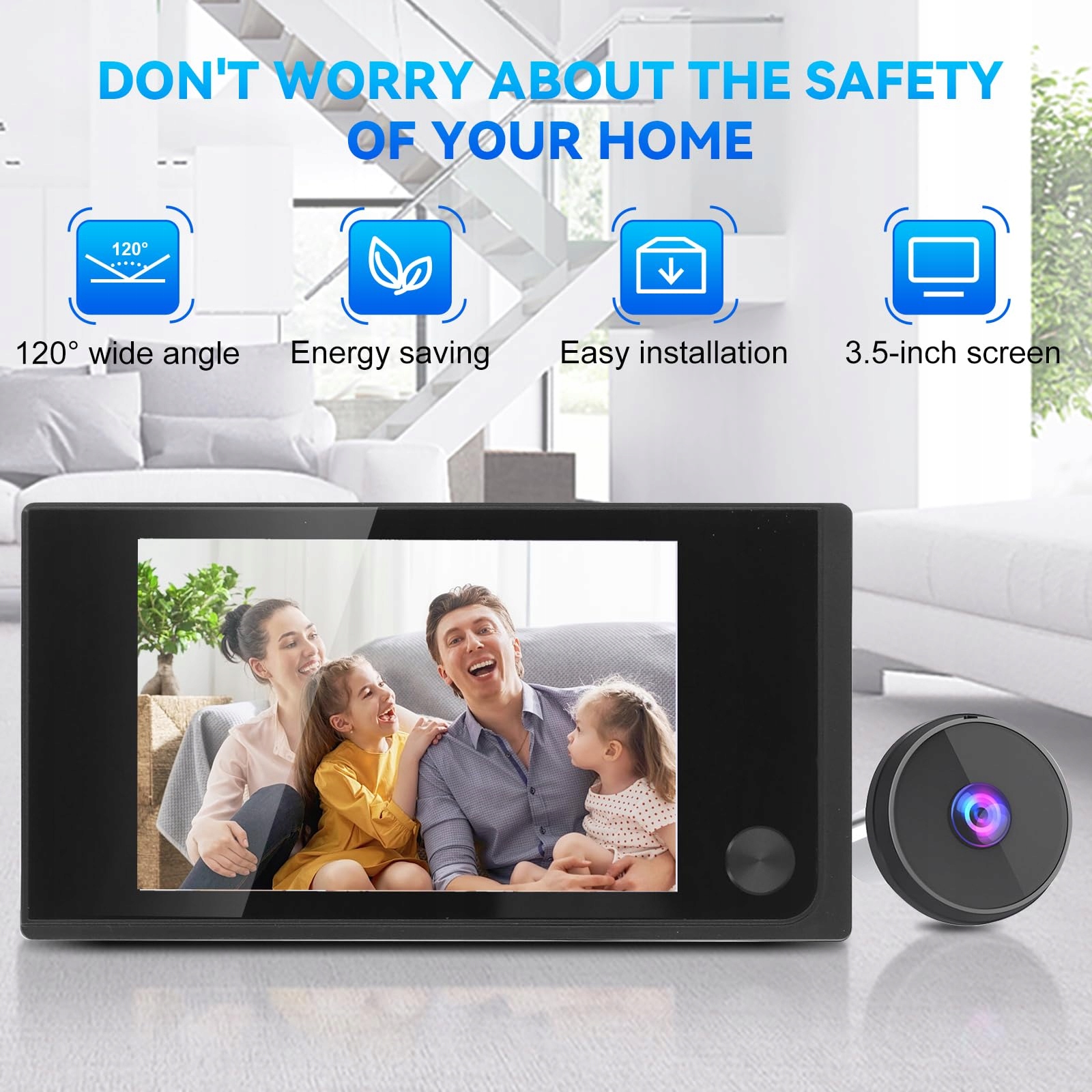 Nikou Cyfrowy wizjer do drzwi kamera, 3,5-calowy wyświetlacz LCD elektroniczna kamera wizjera, 1MP 120-stopniowy dzwonek do drzwi wizjer, oko kota 24-godzinna kontrola, bez noktowizji, do grubości drzwi od 35 do 100 mm