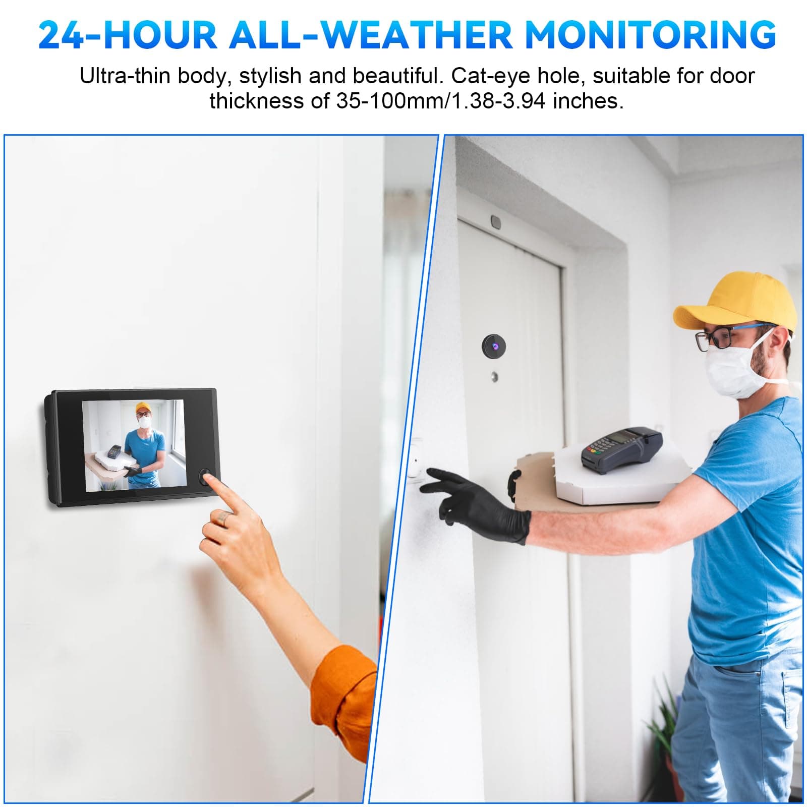KOMPATYBILNOŚĆ DRZWI: Cyfrowy wizjer do drzwi jest odpowiedni dla grubości drzwi od 35 do 100 mm, łatwy montaż i dostosowanie