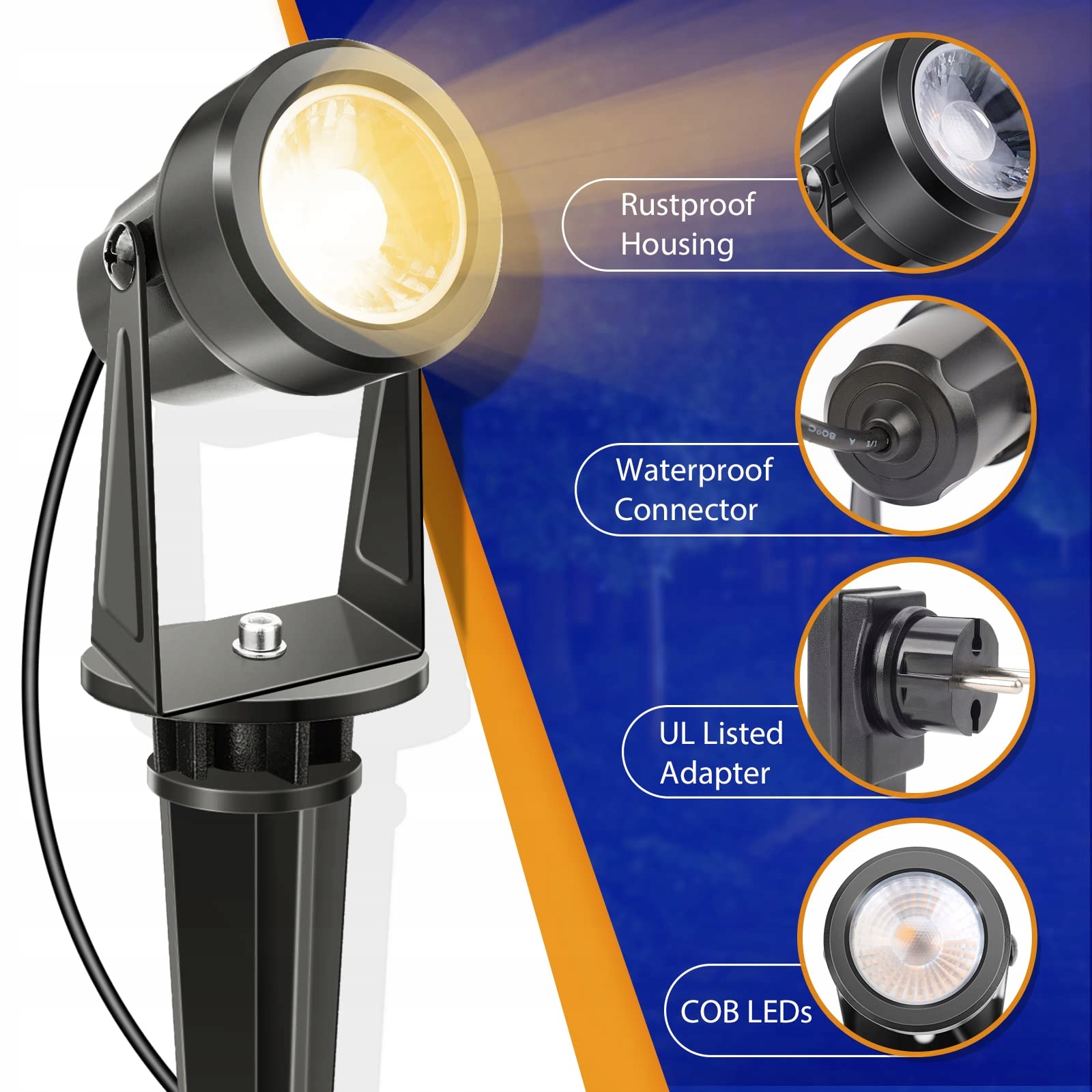 [Niskie Napięcie i Bezpieczne w Użyciu]Oświetlenie ogrodowe LED z zasilaniem i transformatorem może być zaprojektowane tak, aby było gotowe do podłączenia i użytkowania, proste i bezpieczne w użyciu. Dzięki regulowanej głowicy o kącie 270 stopni możesz skierować światło tam, gdzie go potrzebujesz, odpowiednie do ścian, drzew, flag, rabat kwiatowych i innych.