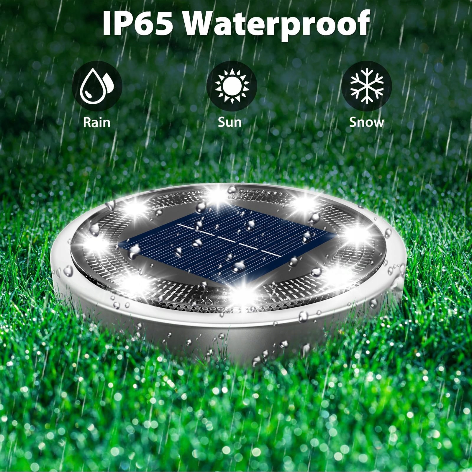 [IP65 wodoodporne i trwałe]Solarne lampy gruntowe wykonane są z wysokiej jakości stali nierdzewnej i plastiku, lekkie i mocne, o dobrej odporności na korozję, odpowiednie do użytku na zewnątrz. Skutecznie izolują wodę i mgłę