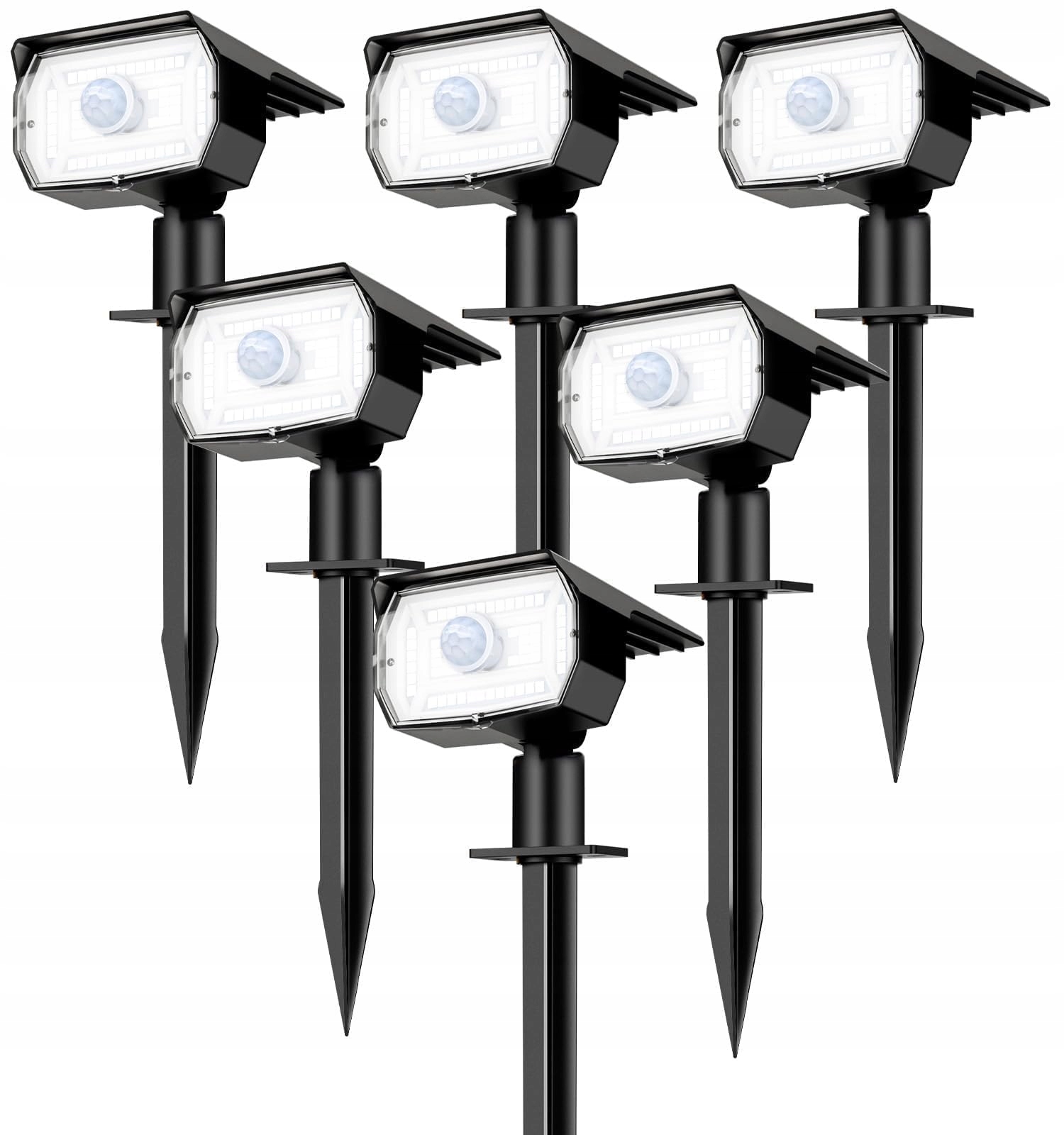 nipify Lampy solarne na zewnątrz z czujnikiem ruchu, 6 sztuk, 3 tryby reflektorów solarnych na zewnątrz, wodoodporne IP65 lampy solarne do ogrodu, 6500K zimnobiałe lampy ogrodowe na ścieżkę, podwórko, chodnik