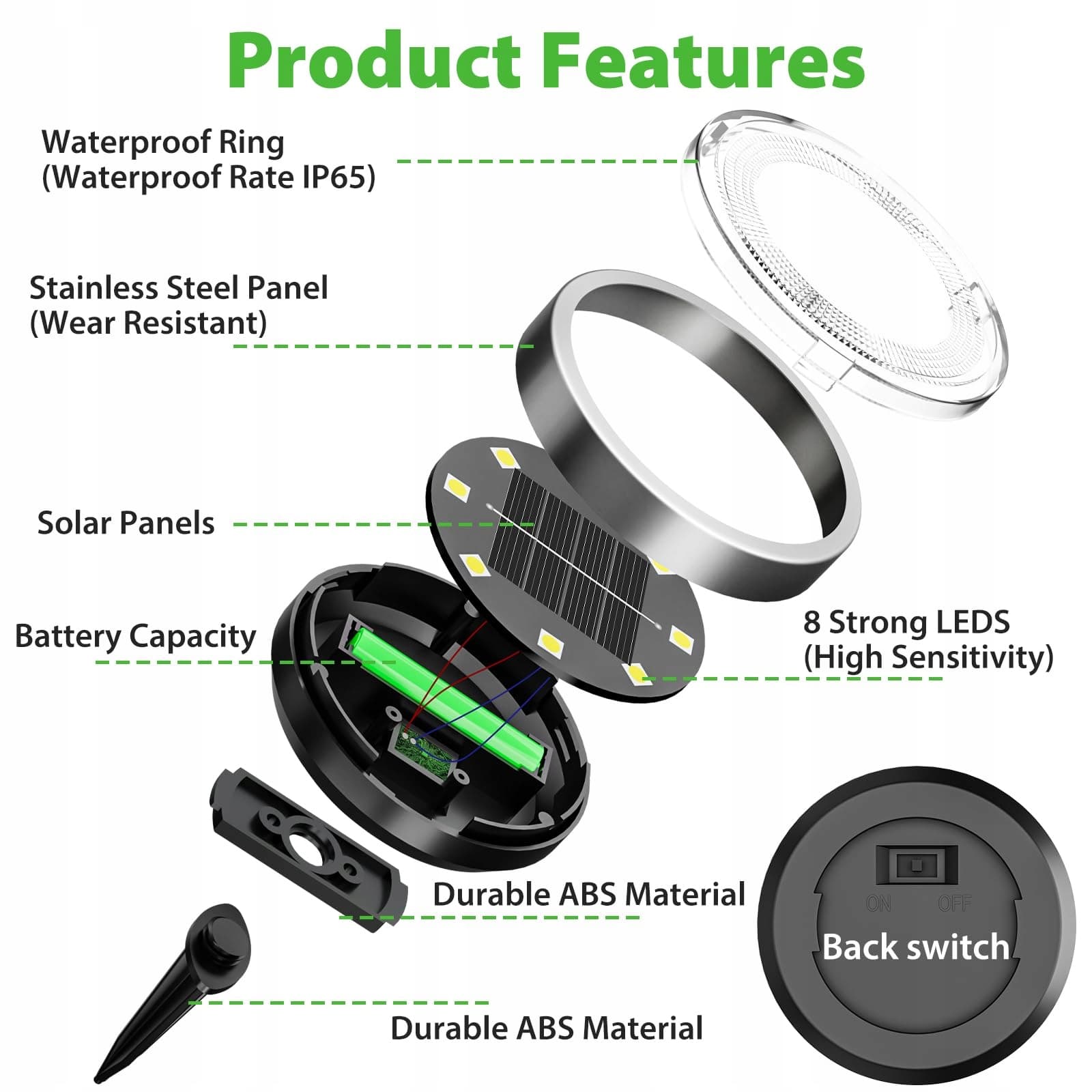 [Energooszczędne solarne lampy podłogowe na zewnątrz]Nasze solarne lampy podłogowe na zewnątrz z 8 diodami LED, wykorzystują zaawansowane energooszczędne diody LED, co oznacza, że ładują się w ciągu dnia i świecą w nocy, co sprawia, że obszar oświetlenia i efekt są większe i jaśniejsze, oszczędzają więcej energii i rachunków za prąd