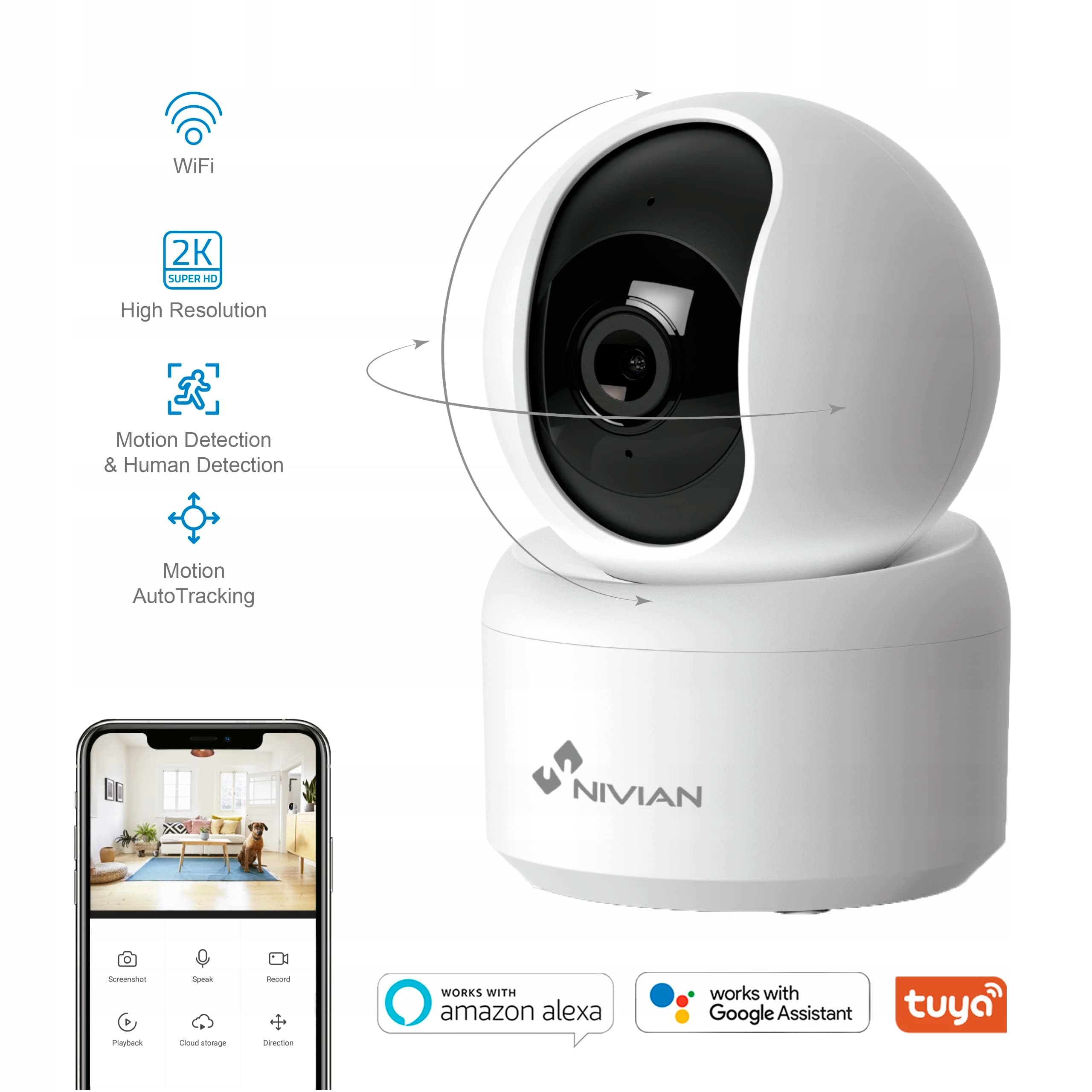 NIVIAN Kamera WiFi 360° 2K Audio Auto-Tracking Do Wnętrz Kompatybilna