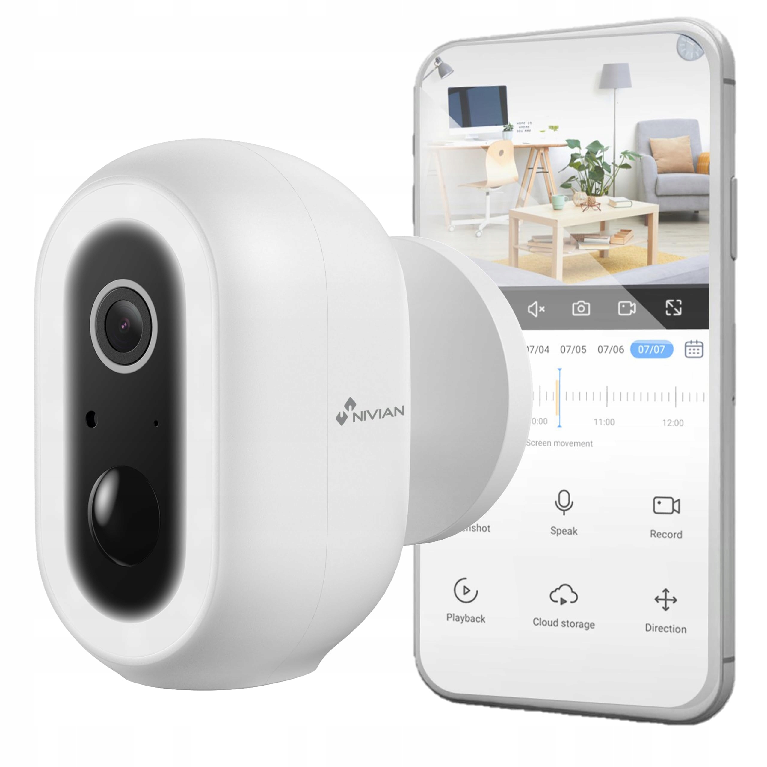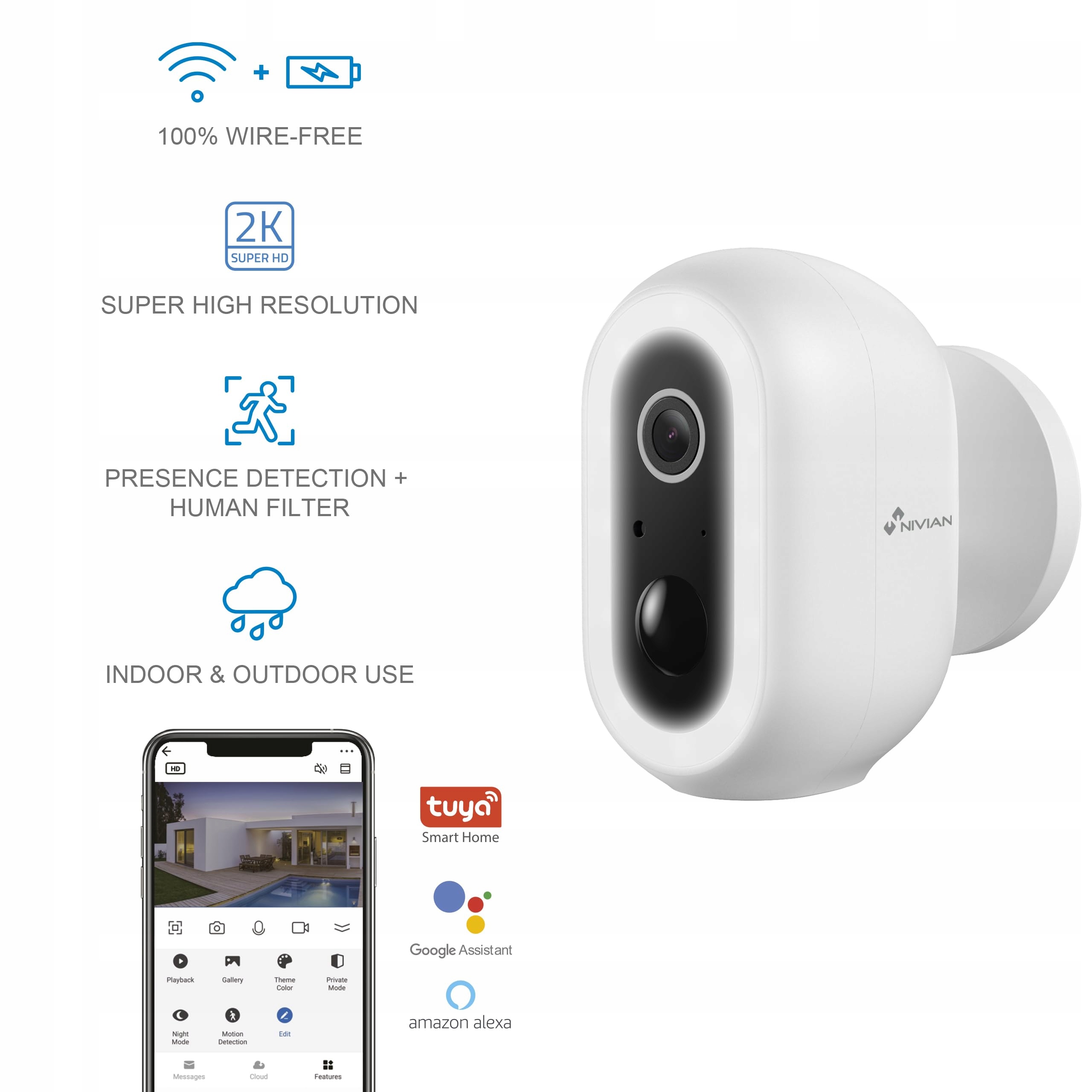 NIVIAN Kamera Zewnętrzna WLAN 2K Z Baterią Detekcja Człowieka Audio LED | Premium Supply