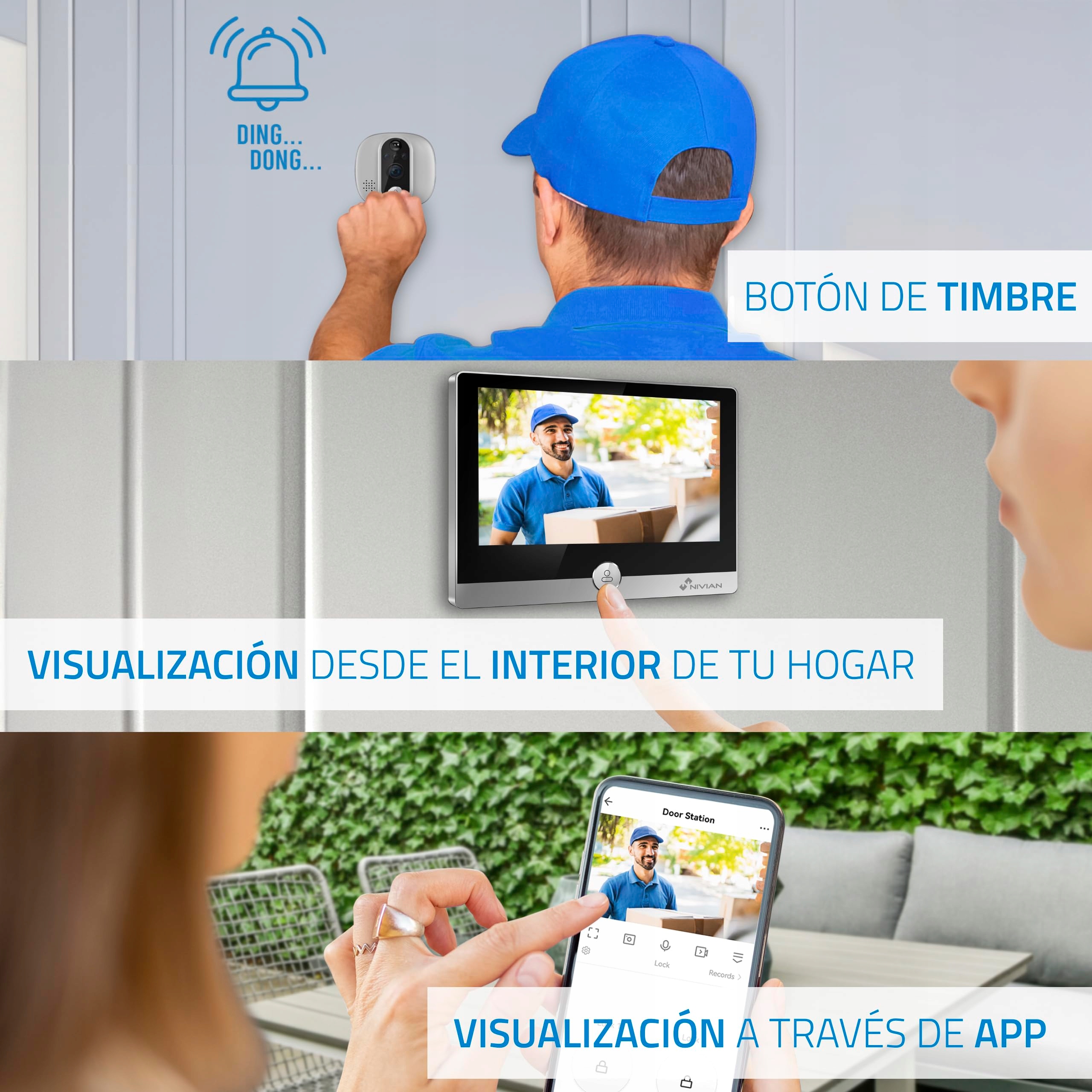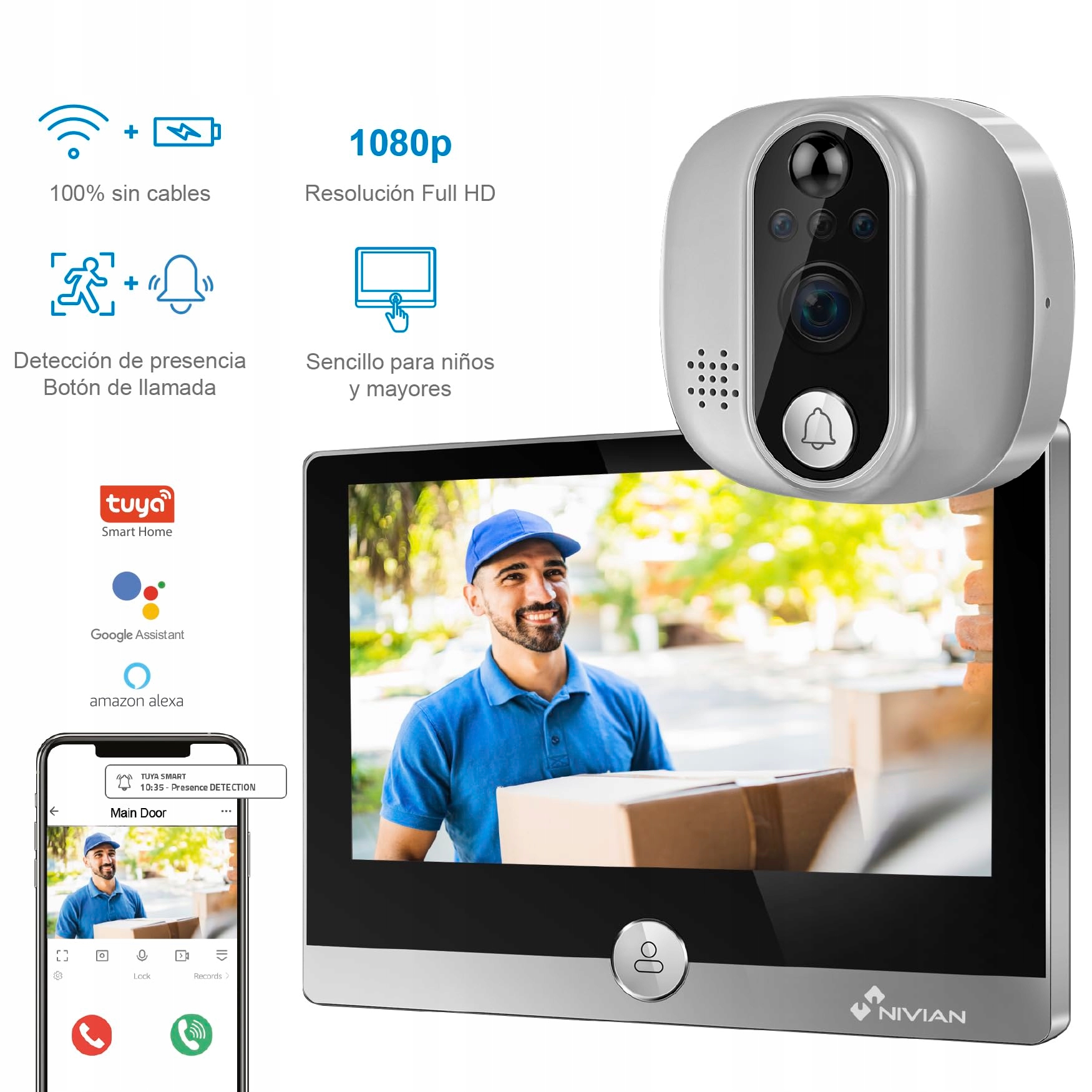 NIVIAN Wizjer Cyfrowy WiFi Kamera Full HD z Akumulatorem i Dzwonkiem | Premium Supply