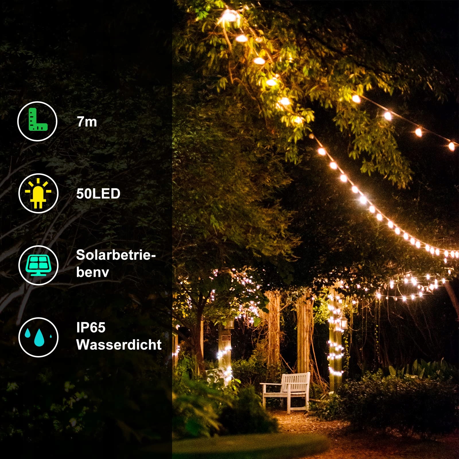 NLNEY 7M Kule Led Girlanda Solar Zewnętrzna, Girlanda Kule Zewnętrzna/Wewnętrzna, 50LED Girlandy 8 Trybów Solar Wodoodporne Światła do Dekoracji Ogrodu, Balkonu, Świąt, Wesel (Ciepły Biały)