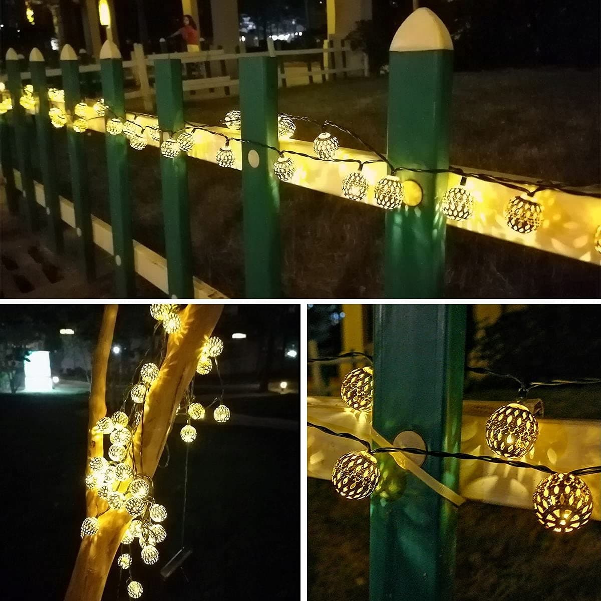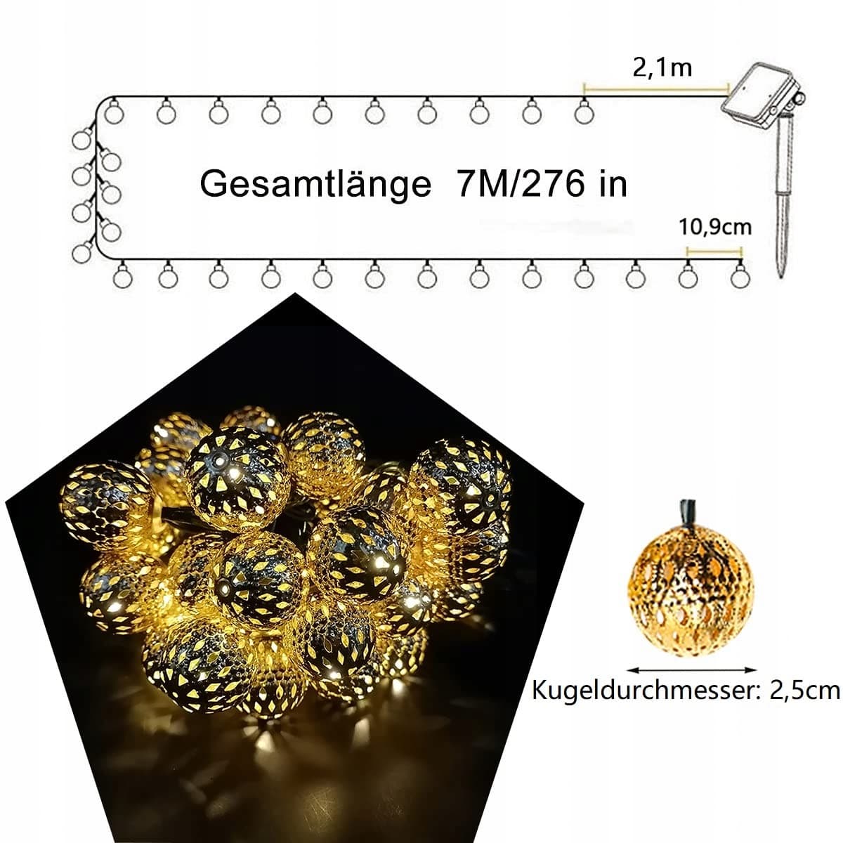 🌟[50 LED Solarne Kule Girlandy]7M długa zewnętrzna led solarna girlanda z 50 2,5cm złotymi marokańskimi kulami żarówkami z kątem widzenia 360 stopni, które świecą we wszystkich kierunkach, tworzy przytulną i świąteczną atmosferę dla Ciebie i Twojej rodziny.