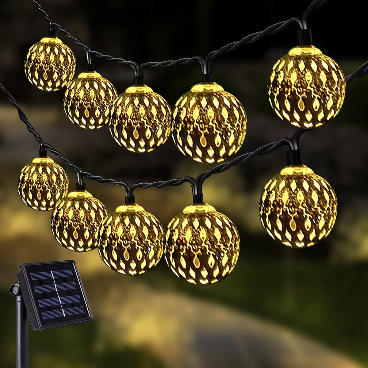 🌟[Piękny Design]NLNEY solarna girlanda zewnętrzna wykonana jest ze specjalnych materiałów metalowych. Są solidnie wykonane, odporne na ciepło, uderzenia, trwałe i bezpieczne, idealne do użytku wewnętrznego i zewnętrznego. Uwaga: Ponieważ ta marokańska kula jest wykonana z metalu i ma złoty wygląd, nie nadaje się do częstych deszczy (może z czasem rdzewieć, a wodę można wytrzeć po deszczu), ale panele słoneczne mogą być umieszczone na zewnątrz.