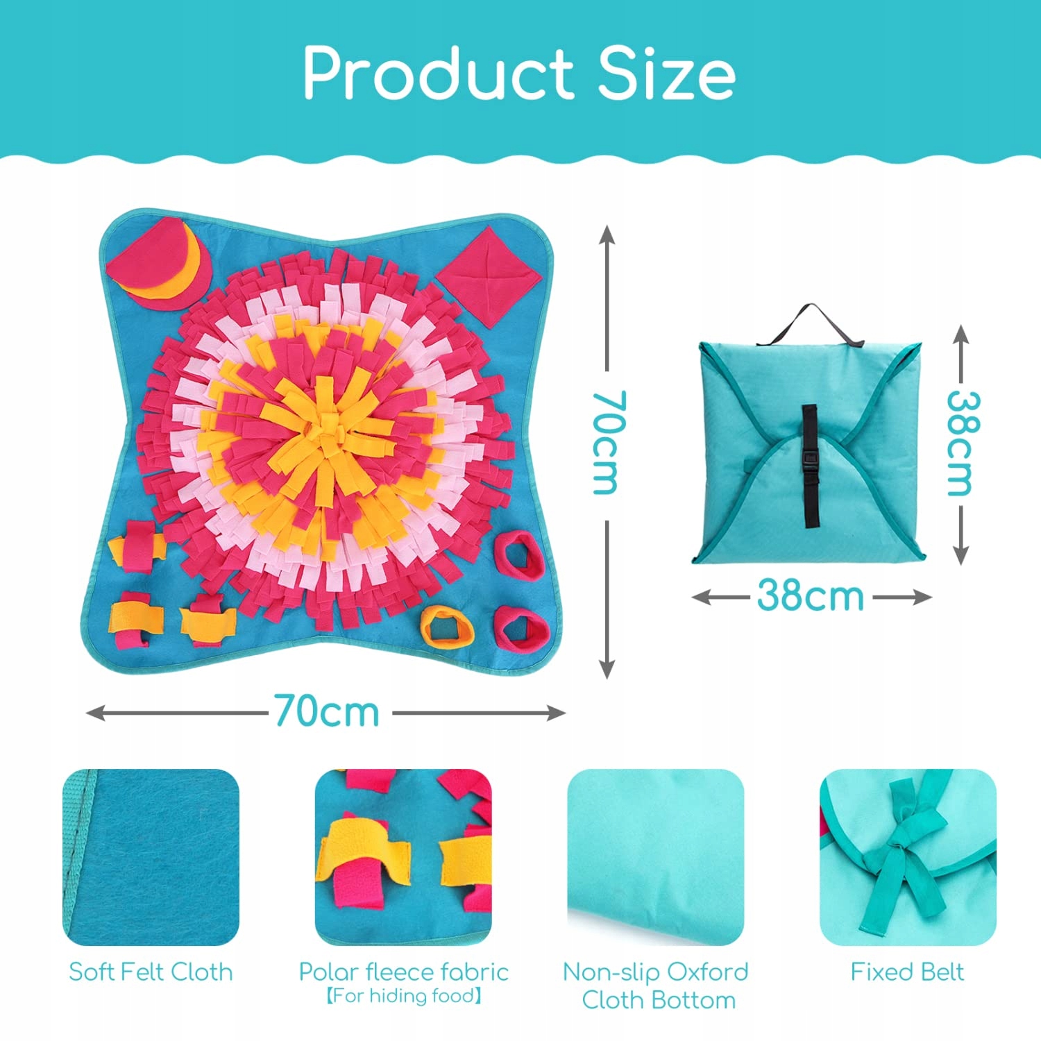 Nobleza mata węchowa dla psa, zabawka inteligentna, mata węchowa, zmywalna, składana, antypoślizgowa, zabawka węchowa dla psa, wspiera naturalne umiejętności poszukiwania jedzenia, 70*70cm