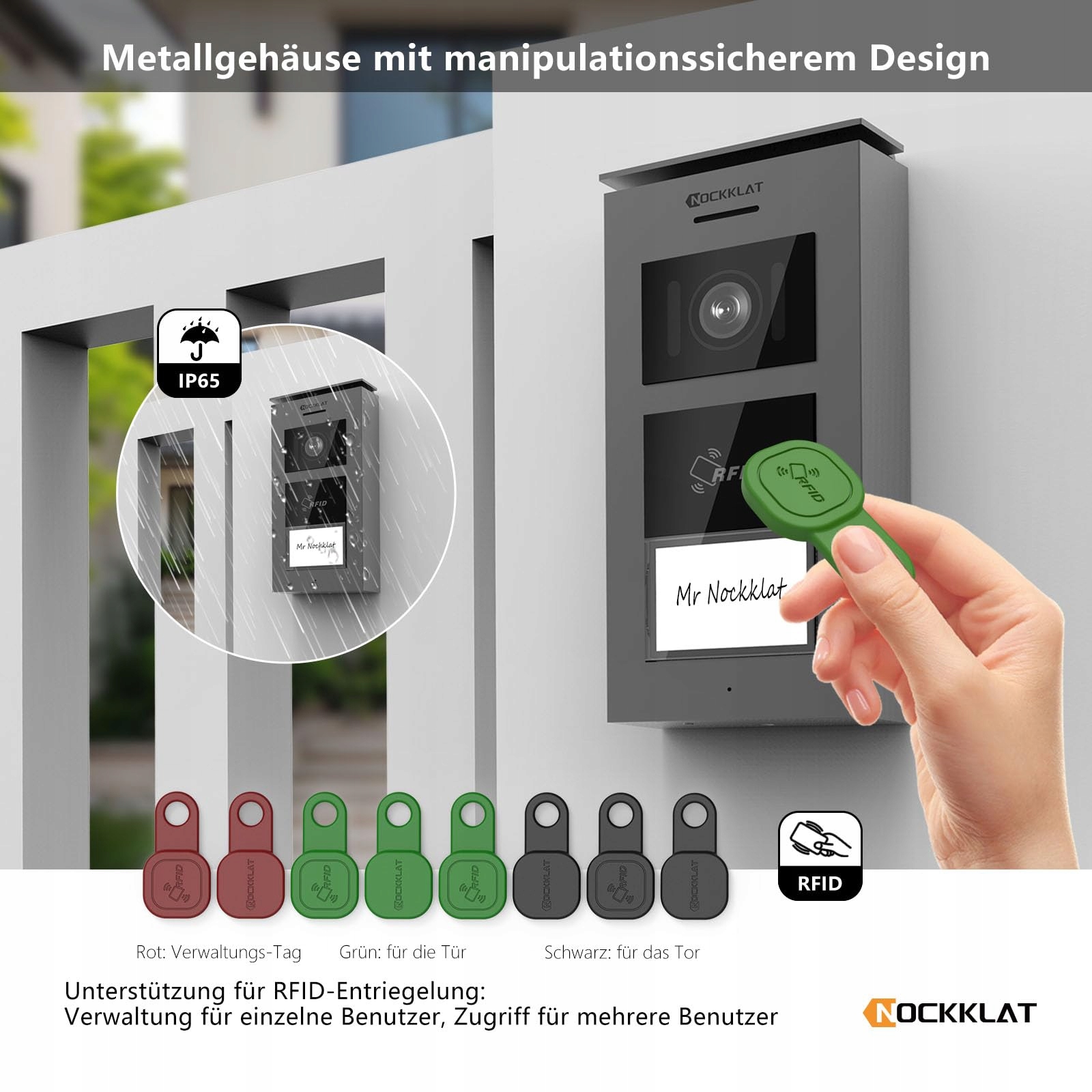 NOCKKLAT WLAN 2 przewodowy wideodomofon z kamerą IP65, 1080p HD, 7-calowy ekran dotykowy, otwieranie domu rodzinnego przez aplikację/kartę zbliżeniową, wykrywanie ruchu, noktowizja, lokalne informacje pogodowe