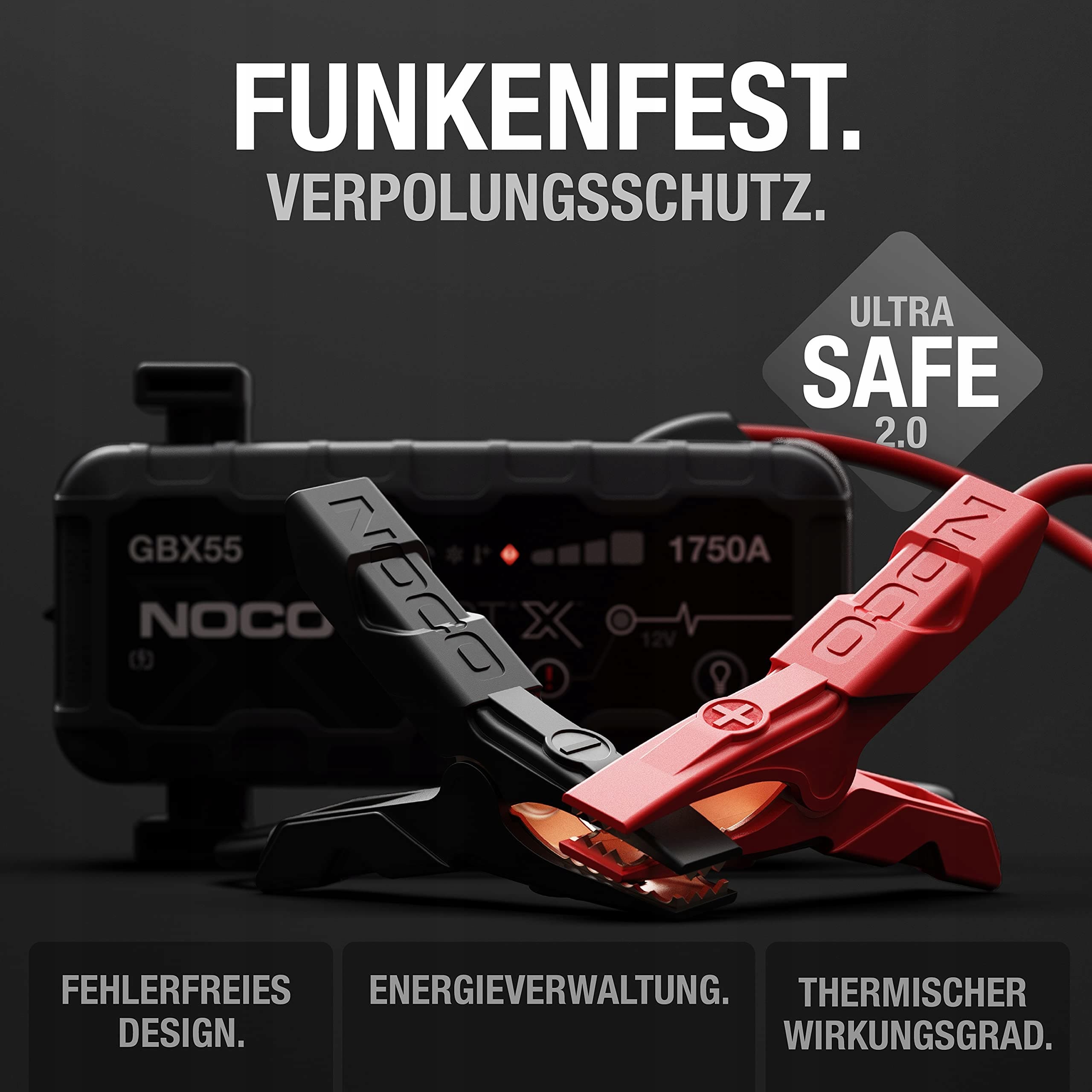 NOCO Boost X GBX55 1750A 12V UltraSafe Starthilfe Powerbank, Auto Batterie Booster, Tragbare USB Ladegerät, Starthilfekabel und Überbrückungskabel für bis zu 7,5-L Benzin und 5,0-L Dieselmotoren