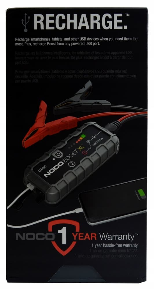 NOCO Boost XL GB50 1500A 12V UltraSafe Starthilfe Powerbank, Auto Bateria Booster, Przenośna ładowarka USB, kable rozruchowe i kable do rozruchu silników benzynowych do 7,0L i diesla do 4,5L