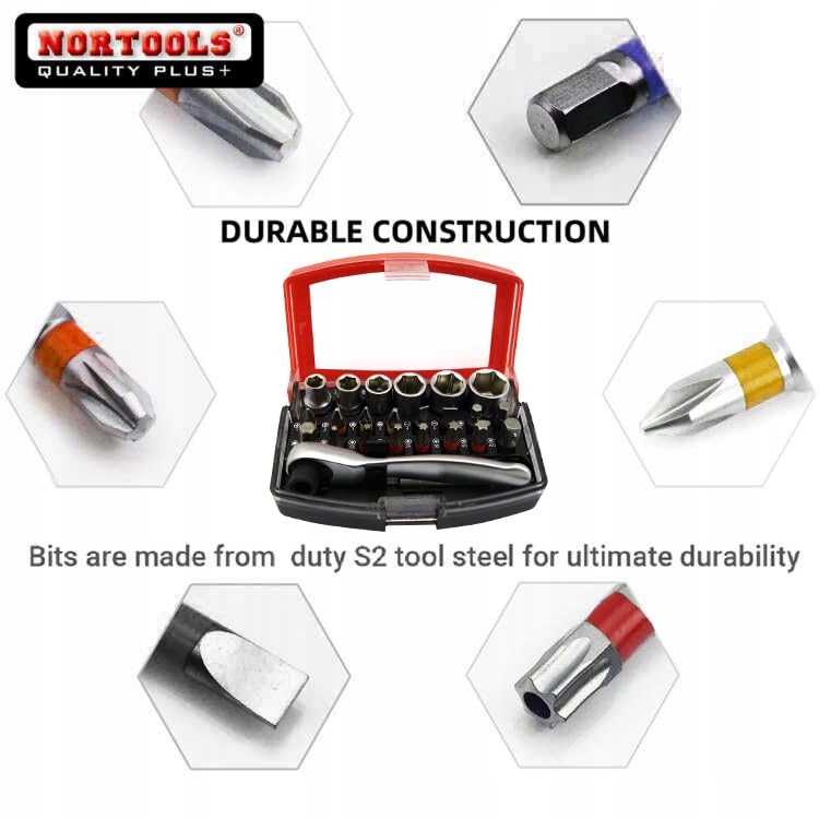 NORTOOLS Zestaw Wkrętaków 24 Elementy S2 z Wiertłami i Nasadkami